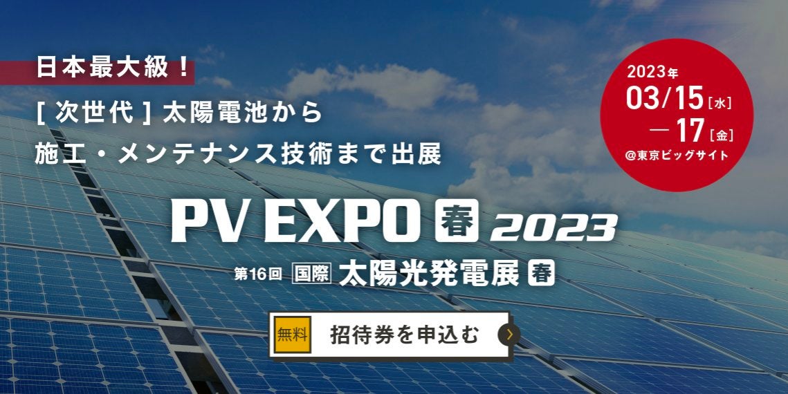 ・展示会:「スマートエネルギーWeek 【春】 2023」内の「PV EXPO【春】太陽光発電展」