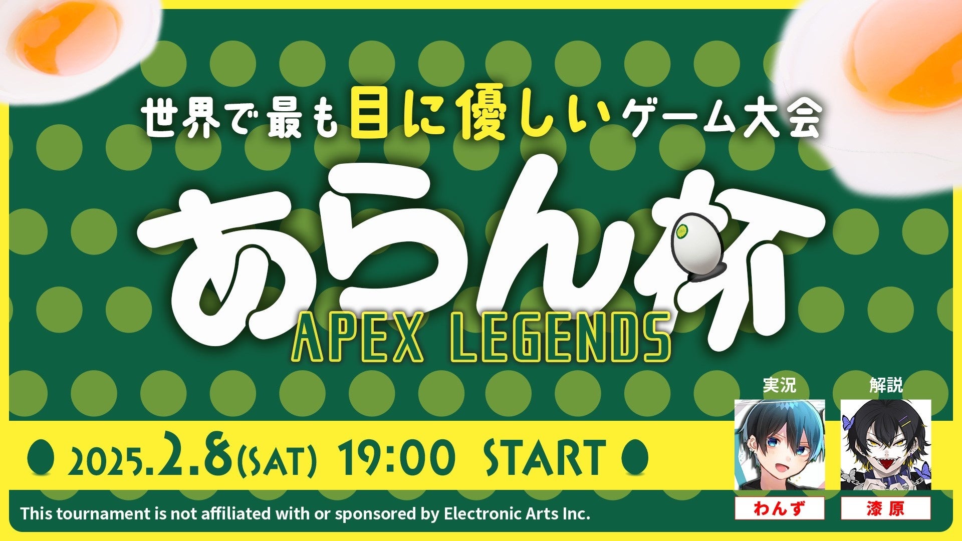 本大会は、eスポーツ大会に参加しながら、高ルテイン含有卵の「あらん」を食べて、目に良いルテインを補給することで、ゲーマー、ストリーマーの目を守る“世界で最も目に優しいゲーム大会”を目指して開催するものです。