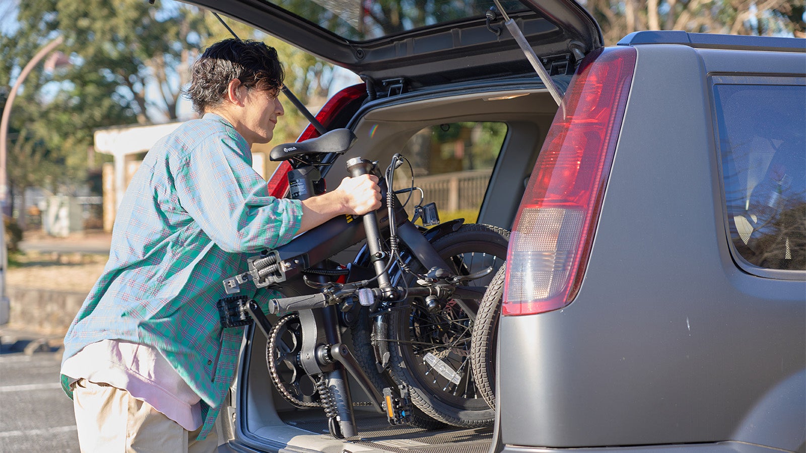 EOLE Xは、折りたたみ時には1m四方に収まるコンパクト設計なので、玄関のデッドスペースや車のトランクにも簡単に収納できます。