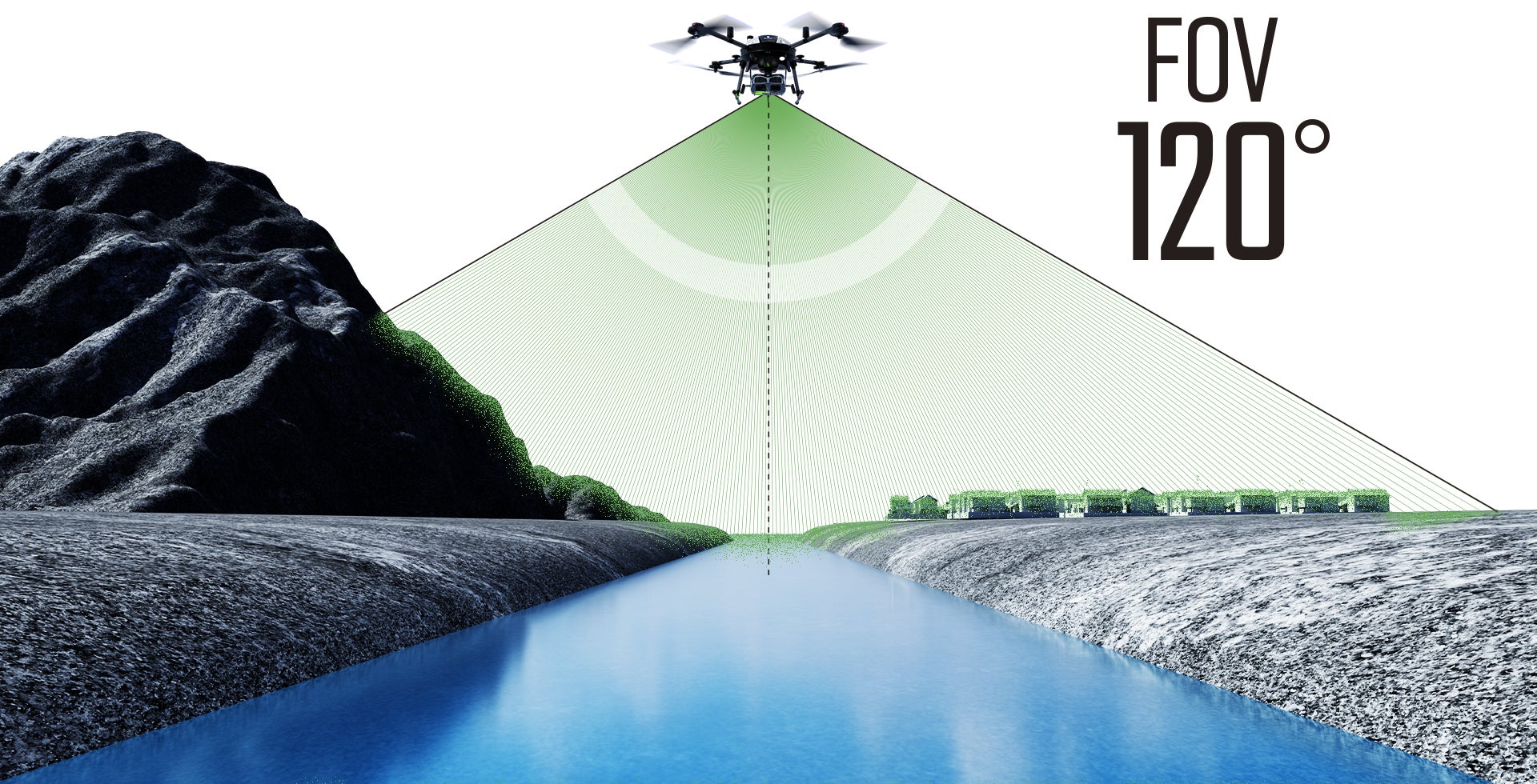 当社の新しいグリーンレーザーシステムTDOT7GREENは視野角が120度あり、日常的な陸部の測量にも適しています。