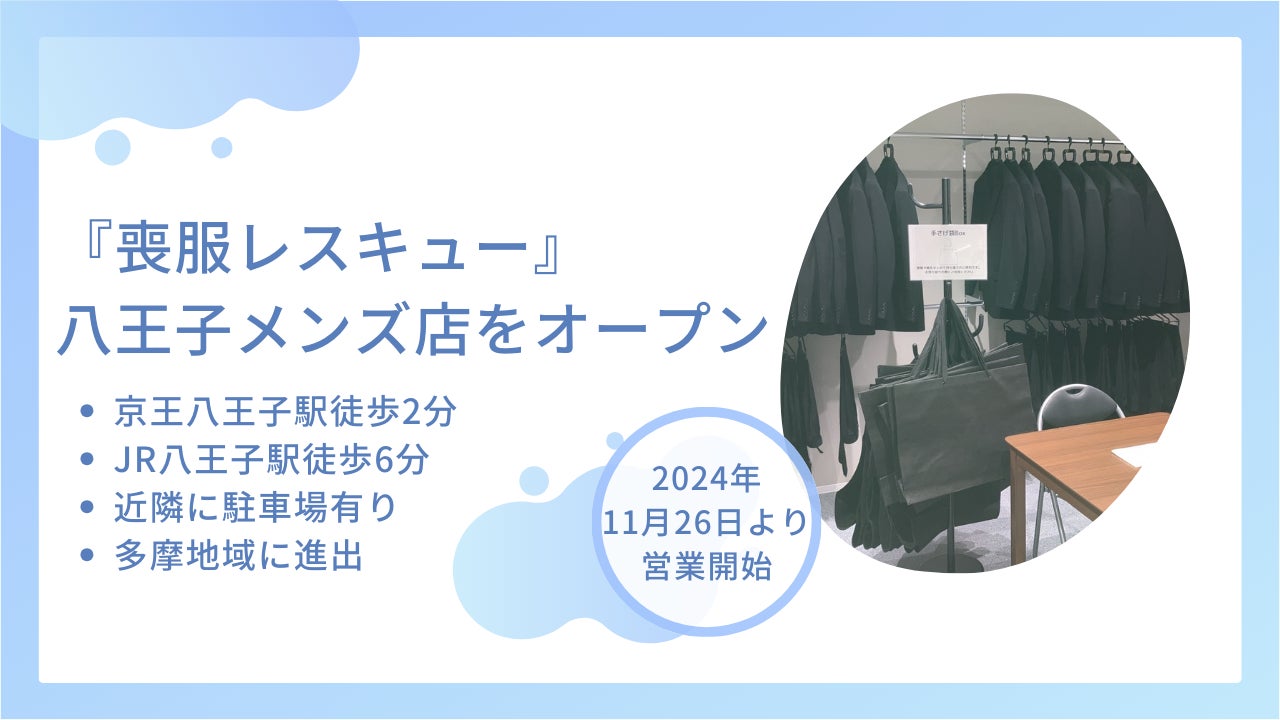 合同会社KARATE(以下、「当社」)は、無人店舗での喪服レンタルサービス『喪服レスキュー』の3号店となる八王子メンズ店を2024年11月26日にオープンいたします。