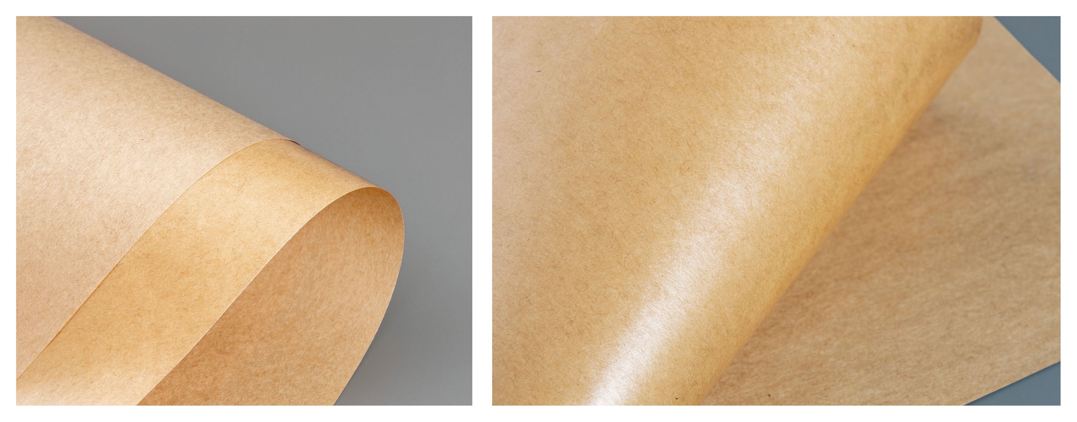 新製品「ペーパック」は、プラスチックフィルム不使用ながらも熱で融着可能なヒートシール性を持つ、水と油に強い紙製の包装資材です。