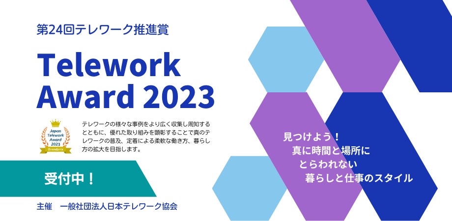 テレワーク推進賞は2000 年(平成12 年)にスタートした国内でもっとも歴史のあるテレワークに関する表彰事業です。 これまで延べ351 の企業、団体、個人を表彰し、その取り組みを広く社会に周知して参りました。今年度のテーマは、” 見つけよう!真に時間と場所にとらわれない暮らしと仕事のスタイル”です。柔軟な働き方、暮らし方のために実践している取り組みを広く募集し、厳正な審査の上、優れた取り組みを表彰します。24 回目となる今年度のテレワーク推進賞は以下の通り大きく強化、変更して開催いたします。是非皆様のご応募をお待ちしております。