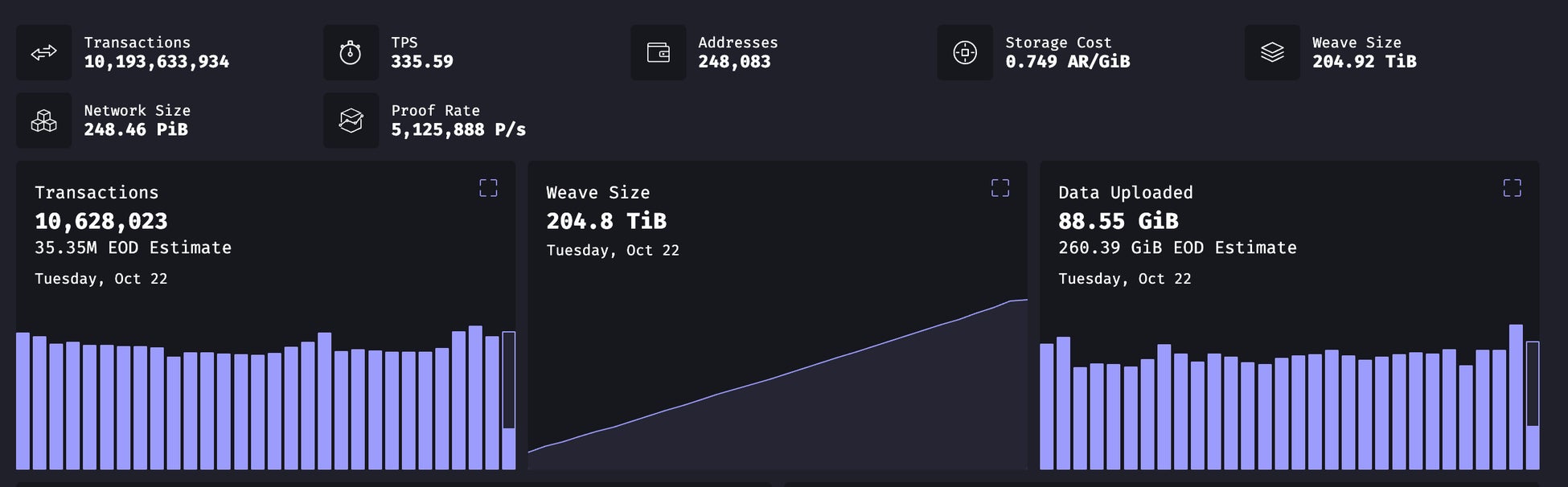Arweaveではすでに200テラバイト以上のデータが永久保存されています。Arweaveの詳細は https://www.arweave.org 及び https://viewblock.io/arweave よりご確認ください。