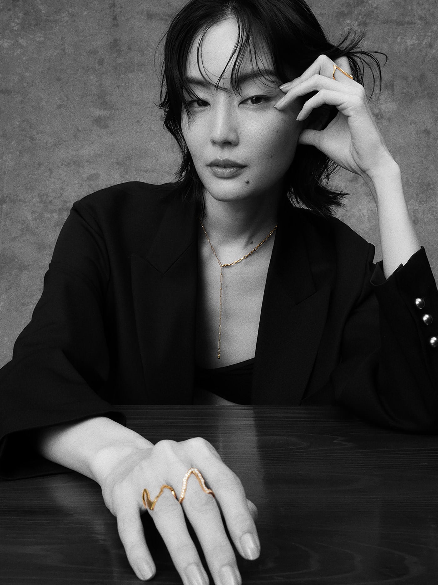 日本古来の技法「金継ぎ」からインスピレーションを受け、壊れたものにこそ新たな価値が宿るという思想のもと、身につける人の本質を引き立たせる〈MILAMORE〉のジュエリーと、人が纏うことで完成するスタイルを提案するMADISONBLUEの洋服。本質に迫るものづくりを追求するブランド同士が織りなす今コラボレーション。