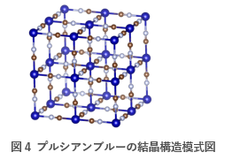18世紀初頭に発見された青色顔料。紺青とも呼ばれる。一般的な組成式はAyFe[Fe(CN)6]x・zH2O(Aはカリウムイオンなどの陽イオン)で、配位高分子と呼ばれる物質群の一種。内部に空隙を持つジャングルジムのような構造を持ち、その空隙にアンモニウムイオンやセシウムイオンを取り込むことが知られている。