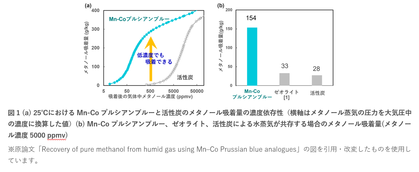 論文タイトル:Recovery of pure methanol from humid gas using Mn–Co Prussian blue analogues