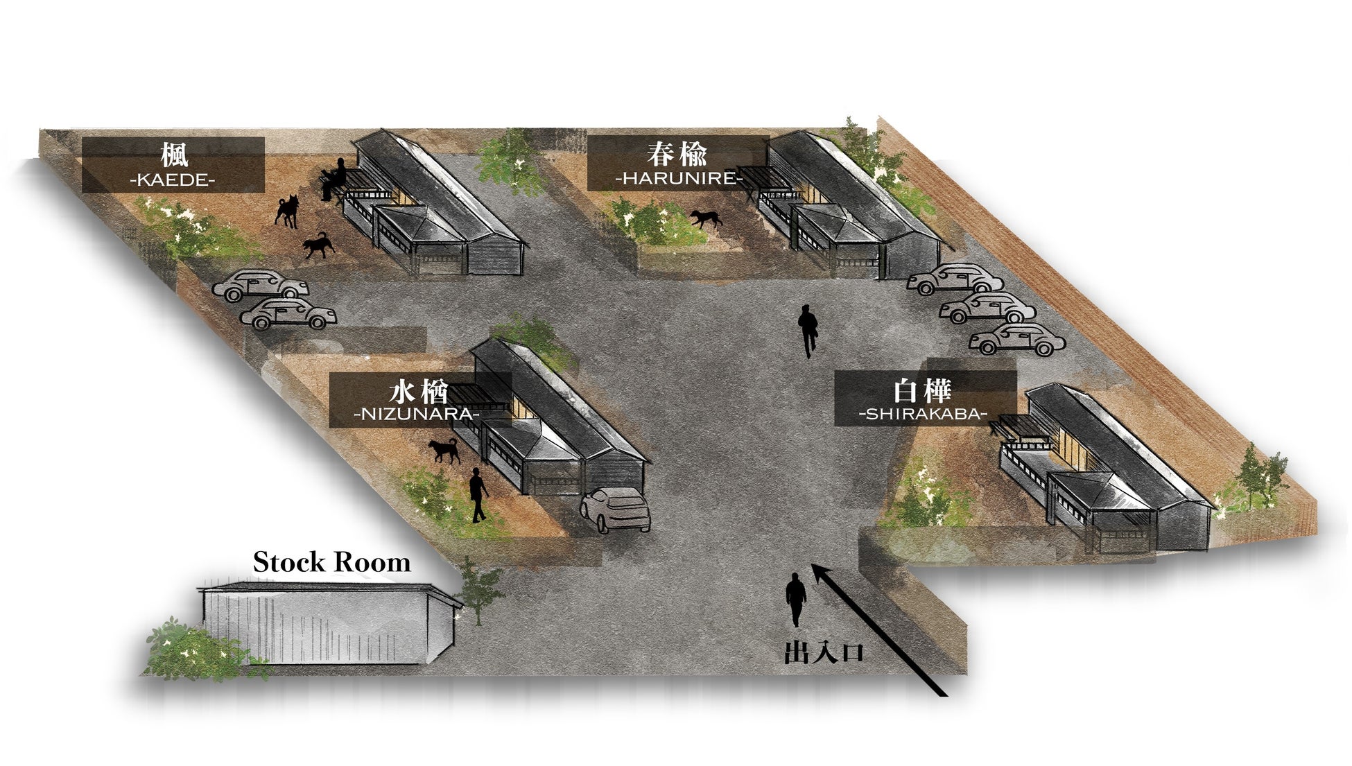 Solana軽井沢別邸には、プライベートドッグラン付きトのレーラーハウスが4棟ございます。