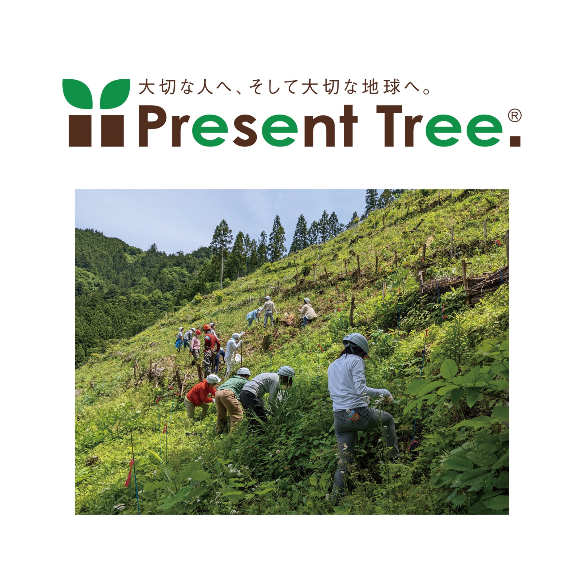 売り上げの2%を森林再生プロジェクト「Present Tree」に寄付し、環境保全に取り組みます。