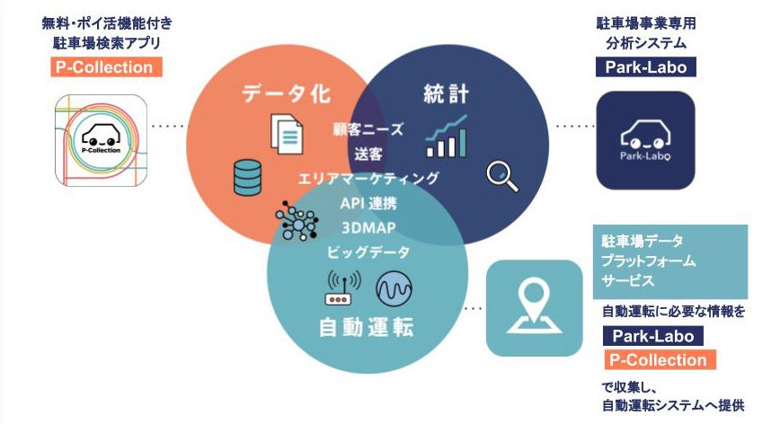 パーキングサイエンス株式会社は、駐車場業界が抱える「駐車場の価値向上」「DX推進」「自動運転時代への準備」という、3つの課題に対し、全国10万件の駐車場からユーザーに最適な駐車場を提案する駐車場検索アプリ「P-Collection」で駐車体験の価値向上を提供。駐車場専用マーケティングシステム「Park-Labo」で、駐車場事業者に需要の可視化・業務の効率化・利益の最大化を提供し駐車場経営のDX推進。そして、駐車場データプラットフォームサービスでは自動運転車へ駐車場情報を提供する事で自動運転時代への準備に取り組んでいます。