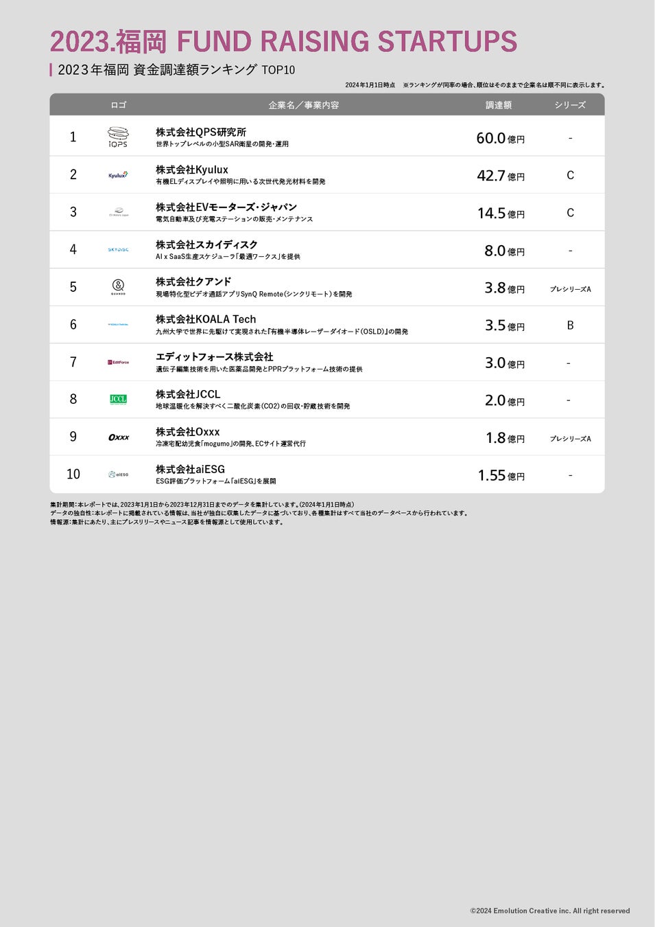 2023年1月1日〜12月31日に発表された福岡スタートアップの資金調達を金額ベースでランキング形式にまとめました。