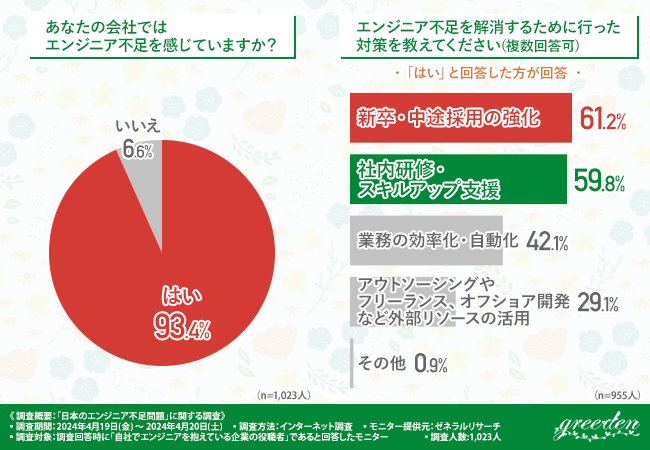 エンジニア不足を解消するために採用や研修を強化したものの、現在も人材不足に悩んでいる企業は多いことが明らかになりました。