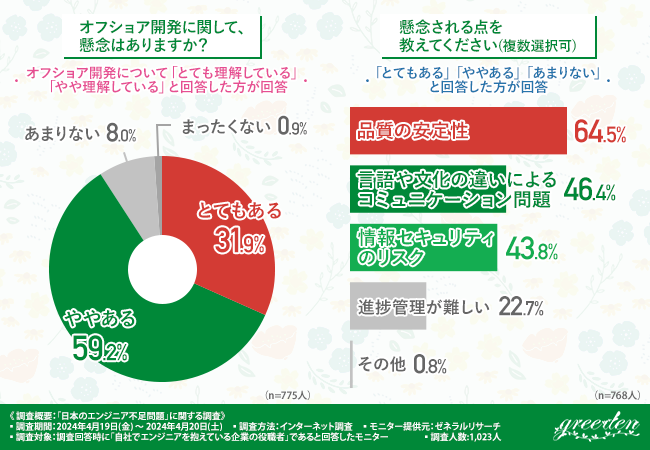 9割以上の方がオフショア開発に懸念を抱いていることが明らかになりました。
