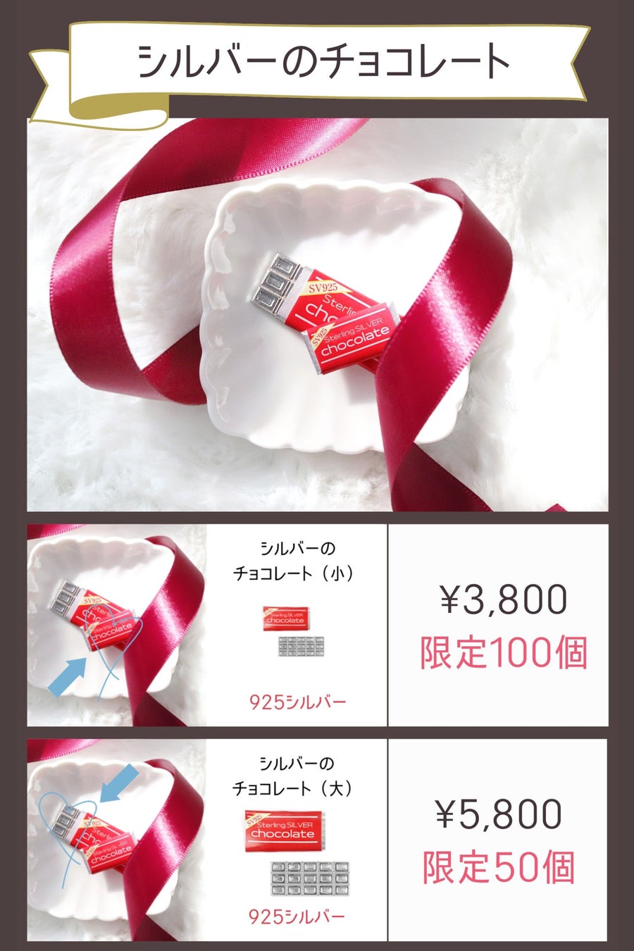 - シルバーは「スターリングシルバー製」、義理チョコならず「銀理チョコ」