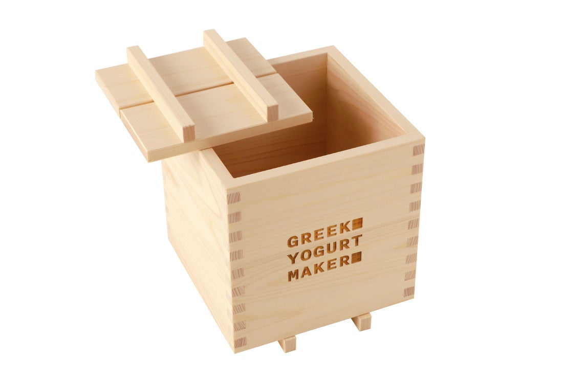 プラスチックを使用せず、国産ひのきで作られた天然素材のグリークヨーグルト作り器。