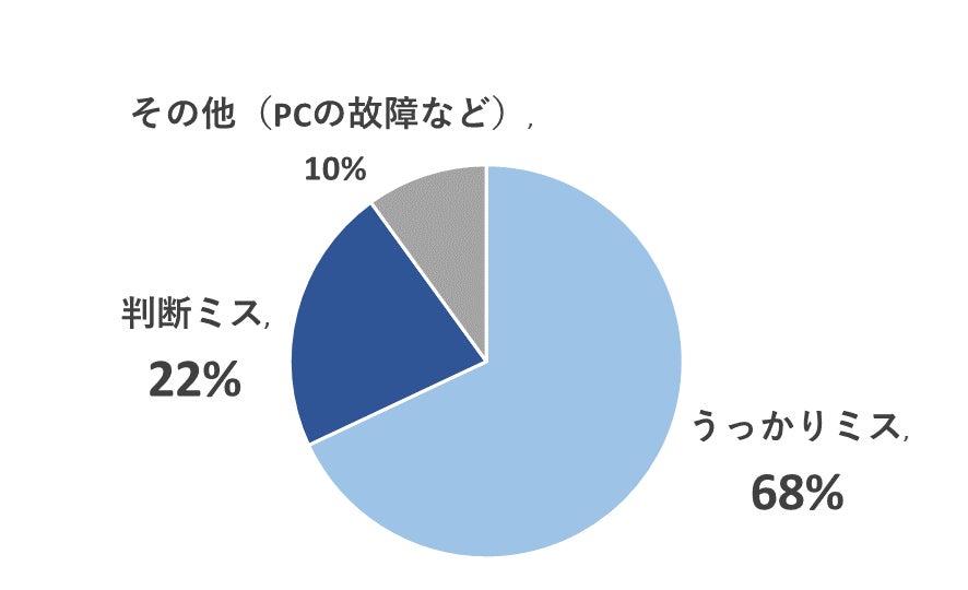 次いで多いのは「判断ミス」の22%。PCの故障などの外的要因によるミス・大失敗は10%という結果でした。