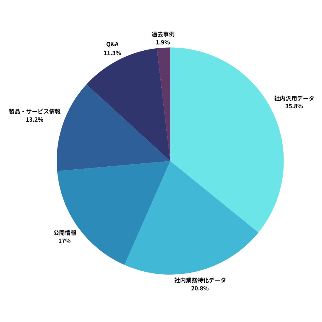 公開情報、Q&A、製品・サービス情報、過去事例、社内汎用データ(マニュアル・規程・社内チャット履歴)、社内業務特化データ(技術文書・ノウハウ・顧客情報)、不明