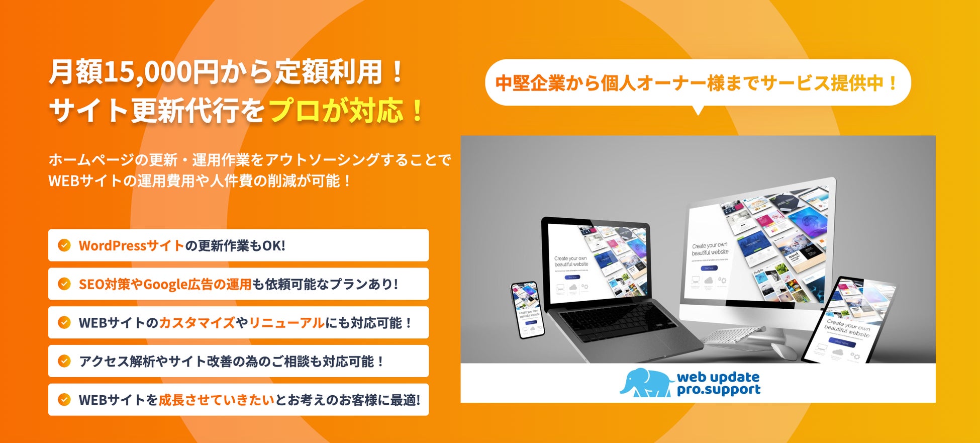 月額15,000円から定額利用が可能なホームページ更新・修正代行サービス