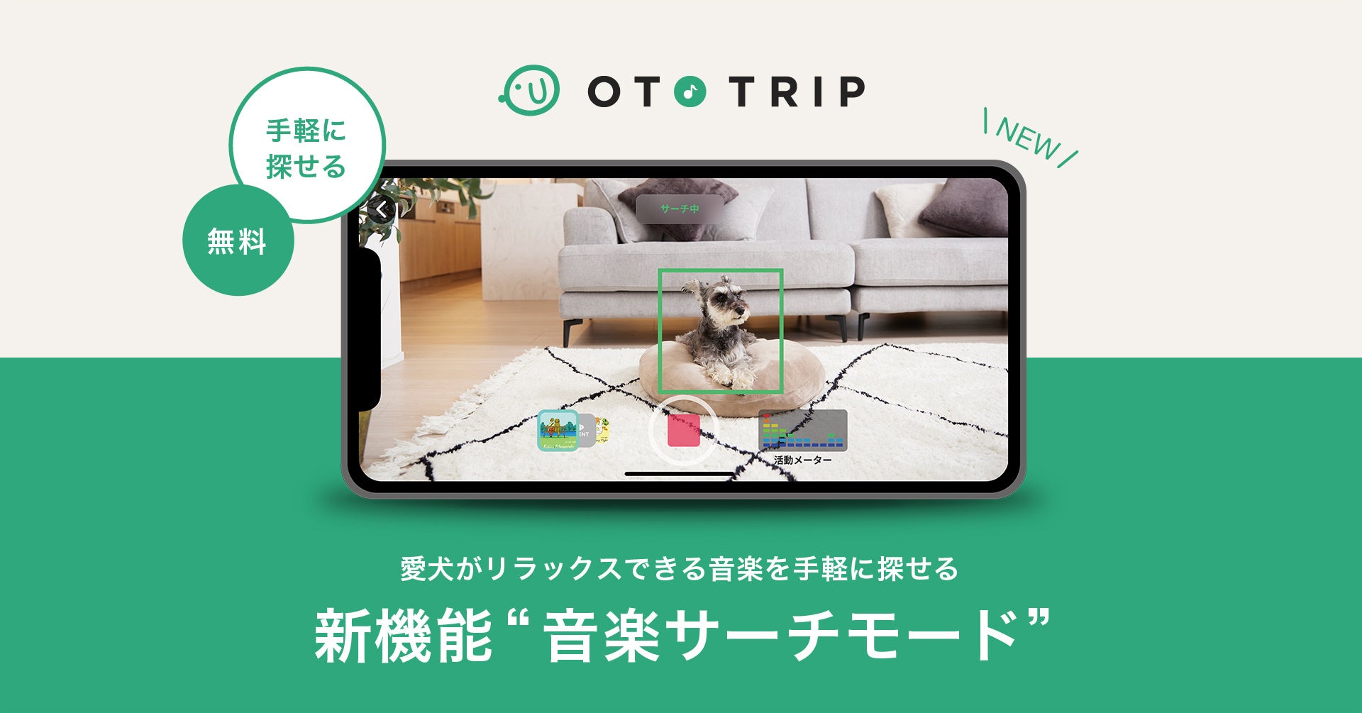 音楽プレイヤー付きペットカメラアプリ『OTO TRIP オトとりっぷ』に、新機能のサーチモードを追加したことで、飼い主さまが愛犬とともに、愛犬のリラックスする音楽を気軽に探すことができるようになりました。