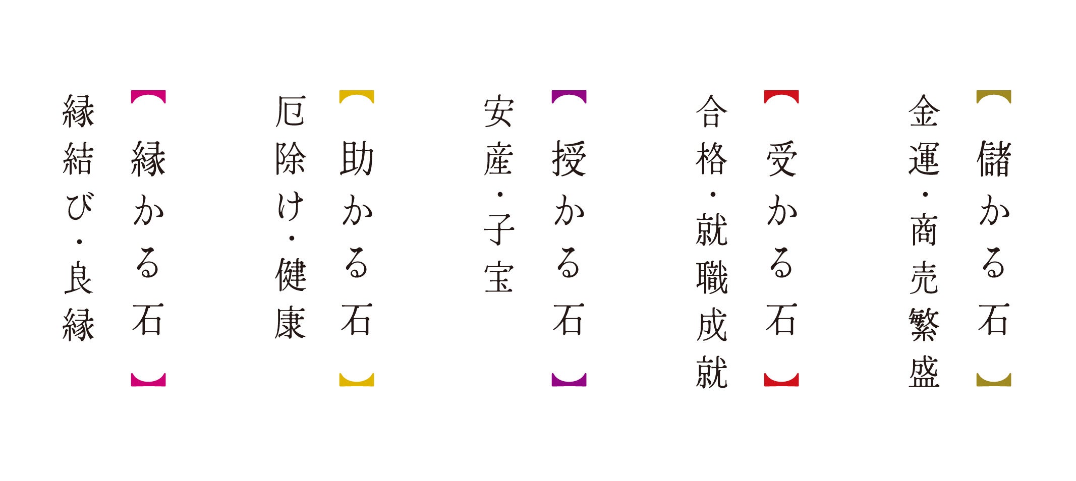 【 かる石お守り 】サイズ バリエーション ※ それぞれのサイズに上記の名称5種類のバリエーションあります。