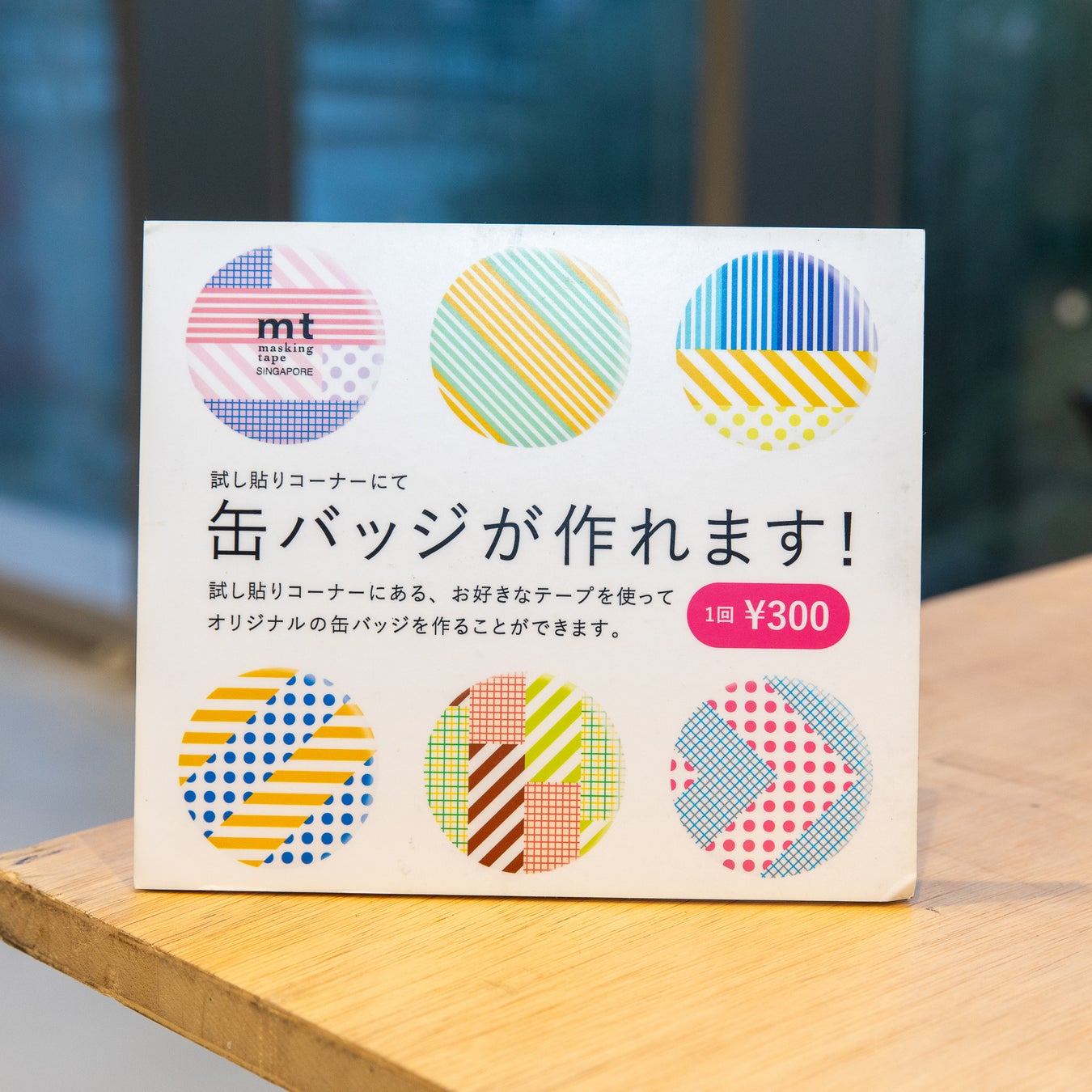会場設置のお好きなマスキングテープを使って、自分だけのデザインで缶バッジを作ることができます。