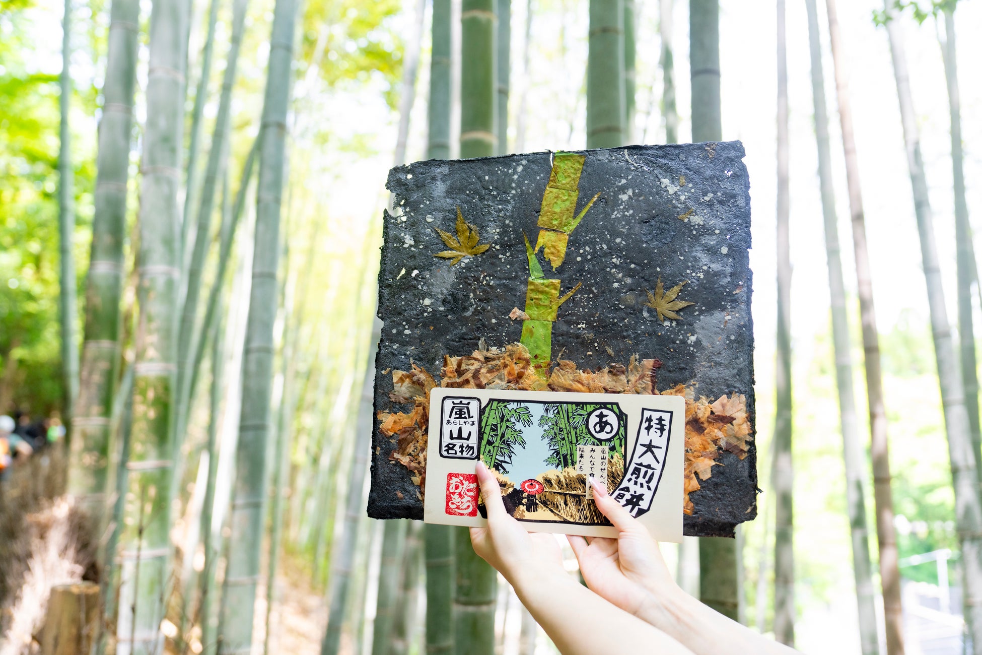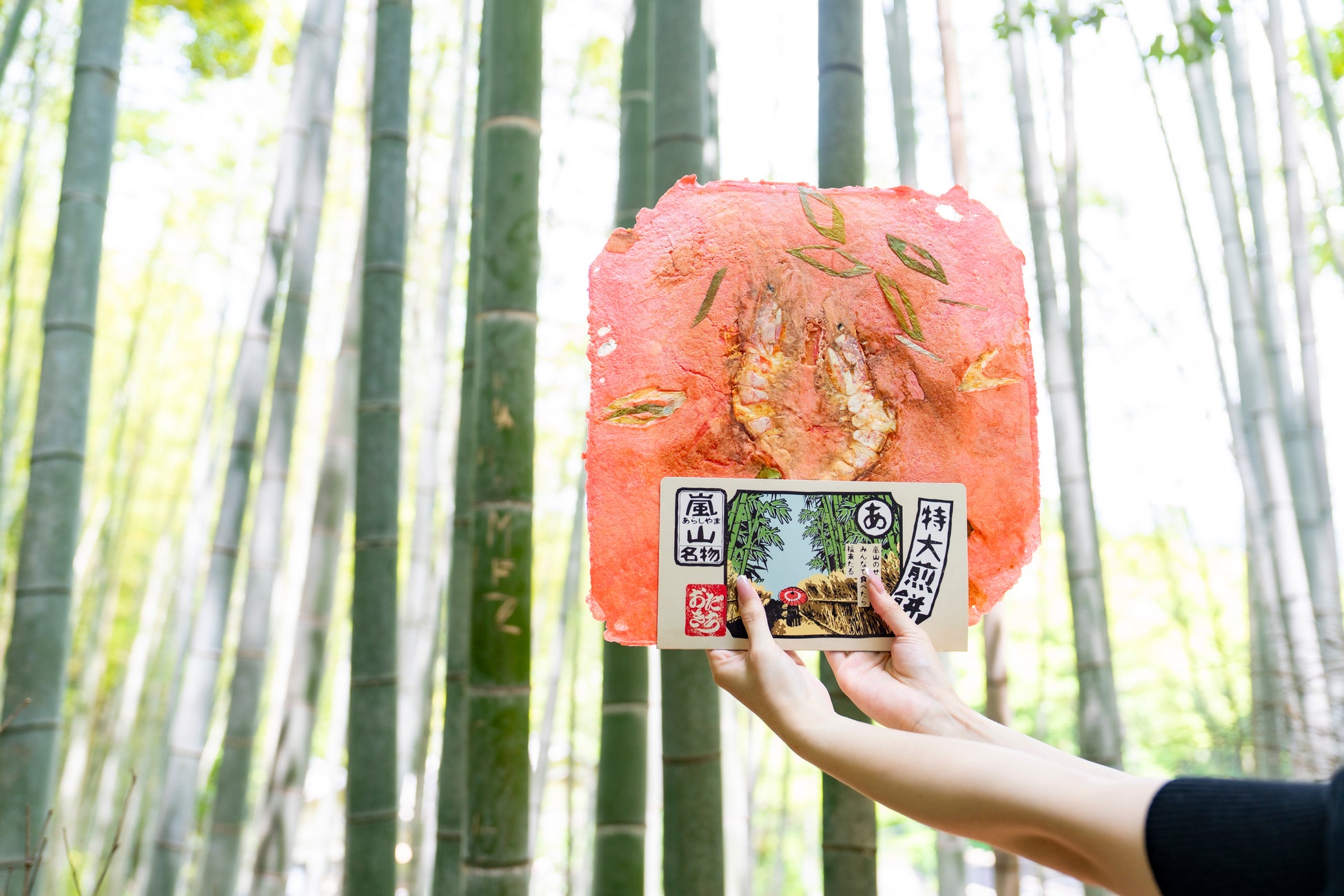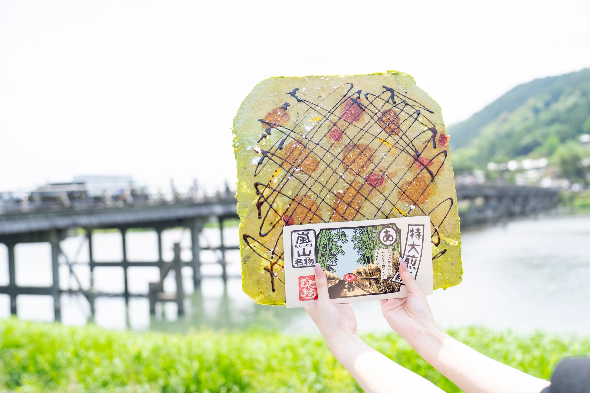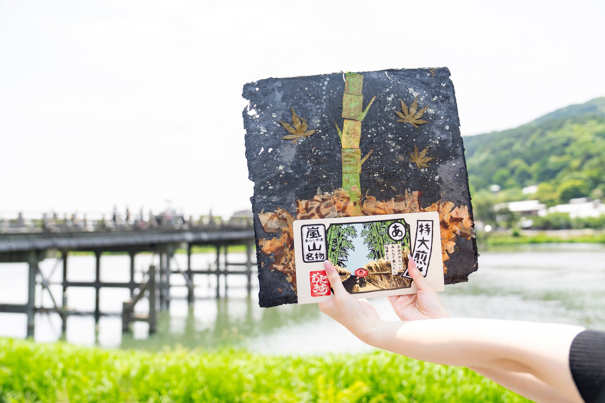 口に広がるネギの香りと鰹の旨味が絶妙にマッチし、一度食べたら忘れられない味わいです。京都嵐山にちなんだ味と竹林をイメージした見た目のせんべいをぜひ渡月橋や竹林と一緒に撮影してみてください。