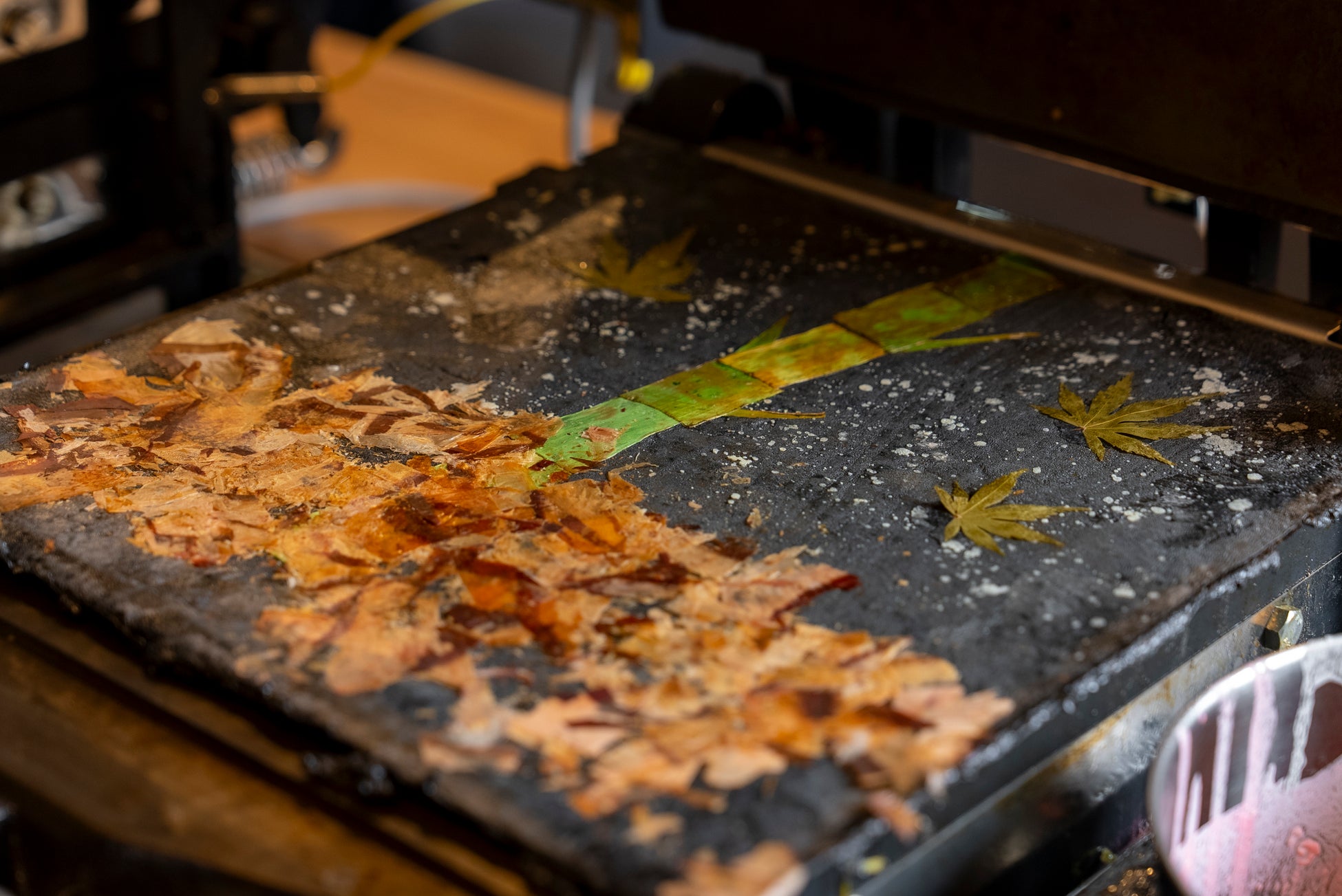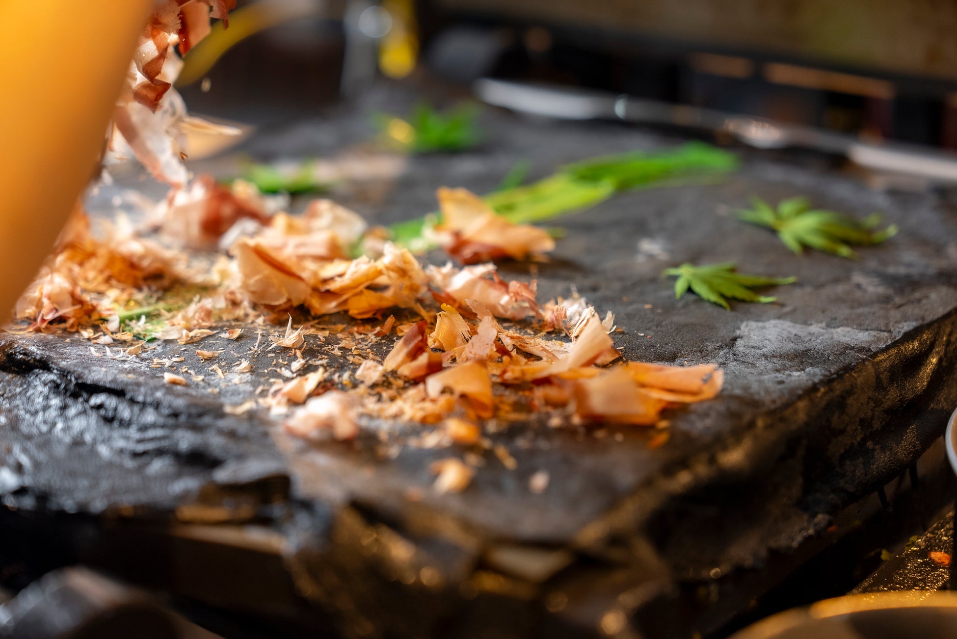 京都や日本ならではの食材を使用し、ご注文いただいてから高温の鉄板でプレスして焼き上げるので、食材の香りと脂の旨みを熱々の状態でお楽しみいただけます。