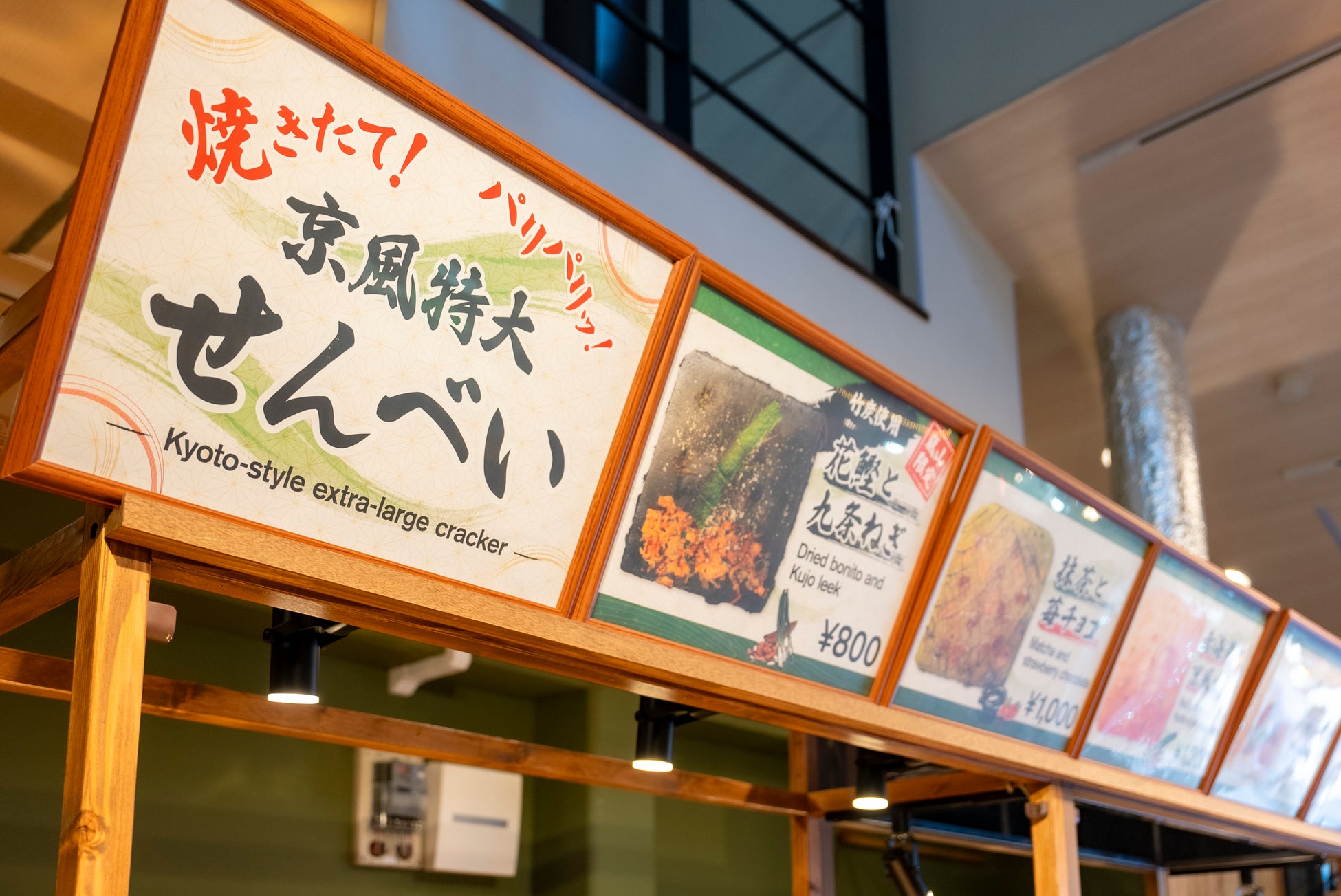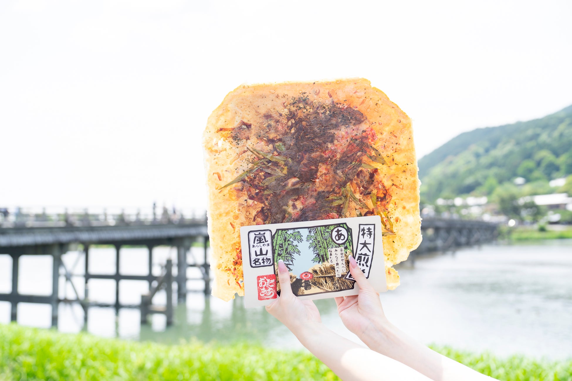 嵐山店限定の「京風特大せんべい」を是非お楽しみください。