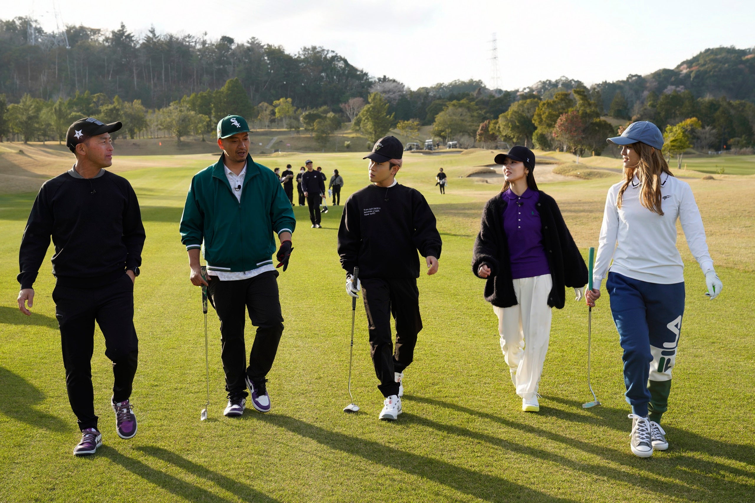 さらに、ゴルフ経験は打ちっぱなしのみという奥田力也(BALLISTIK BOYZ)や川本璃(Happiness)、未経験者の武知海青(THE RAMPAGE)とLeolaも参戦し、初心者から経験者までLDHのゴルフ好きが全11名集まりました。