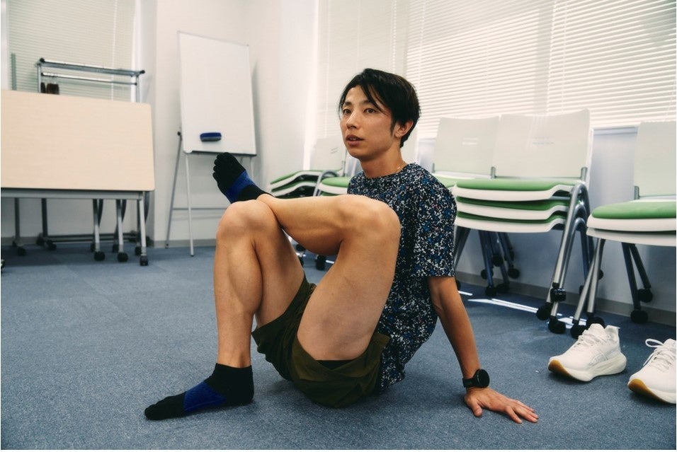 その後、プロスポーツトレーナー秋葉直人さんからランニング後のストレッチ方法をレクチャーいただきました。