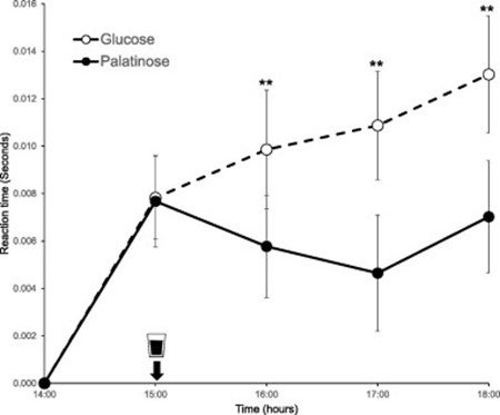 パラチノース摂取群はグルコース群よりDVT課題より短い時間で反応した。