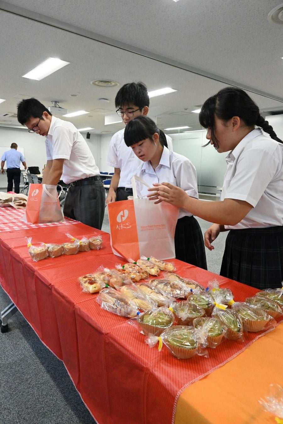同校との活動は2017年から開始しています。パンの実習販売についてはJFE商事サービス㈱が同校を訪問した際、地元でパンの実習販売を実施していることを知り、社会科実習の一助として、社内での実習販売を提案することとなりました。コロナ禍での非常事態宣言の影響で、実習販売の計画が中止になるという残念なこともありましたが、学校との関係は継続し、2021年に初めてのパン販売開催に至り、今回で7回目となりました。