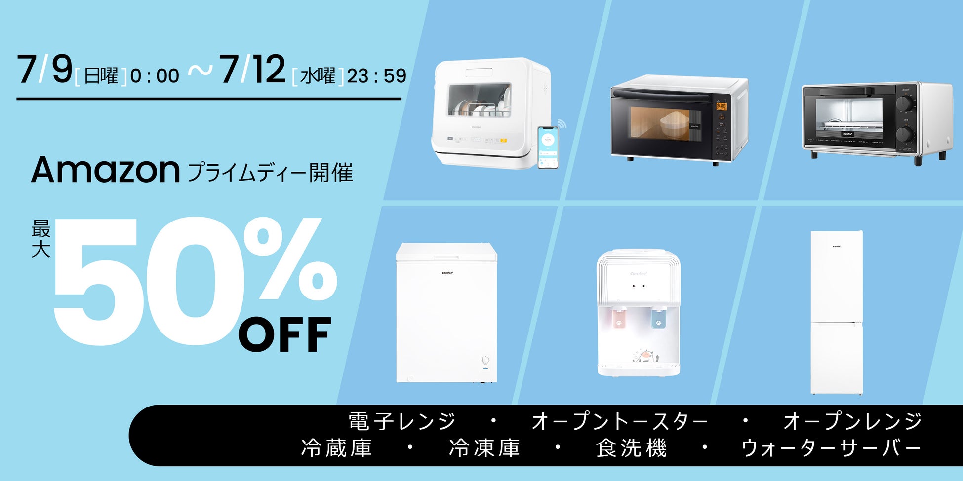 「Comfee’ 家電の最大50% off アマゾンPrimedayセール、」を7月9日(木)0時から7月12日(月)23時59分まで開催!