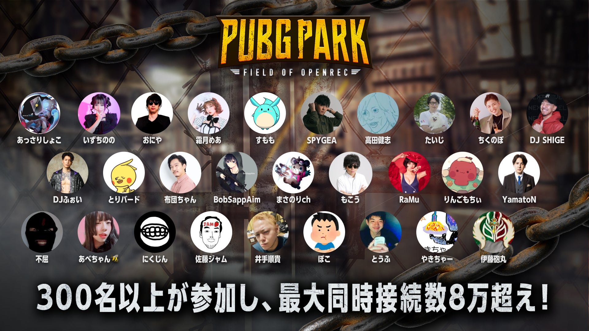 「OPENREC PARK」は配信者と視聴者が一緒になってゲームを遊び尽くす、云わば「ゲームのテーマパーク」のような場です。それと同時に、過去にPUBG PARKを経て人気配信者が誕生したように、これから配信を頑張りたい方が「OPENREC PARK」に参加することで多くの方から注目を集めるという、人気配信者になる道筋のひとつとなることを目指してPARKイベントを定期的に開催してまいります。
