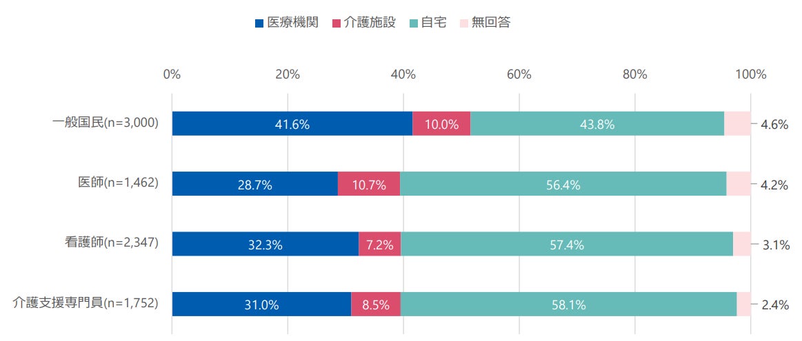 このことから、医療・ケアの提供を受ける環境において、本人の望む場所で最期を迎えることがかなわない課題があるといえます。
