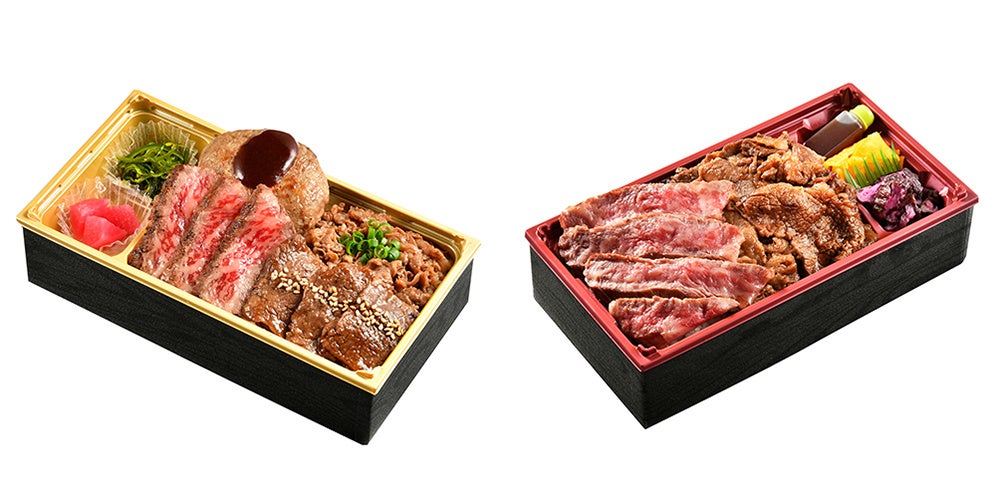 (写真左)米沢牛の食べ比べが楽しめる贅沢なお弁当。