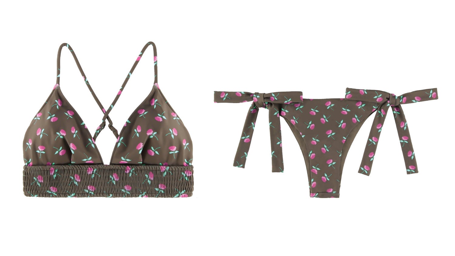トップスは背中にかかる2本のストラップが特徴的な、愛され続ける三角ビキニトップスのBianca(ビアンカ)。バストのサイド部分にシャーリングデザインを加えることで、よりバストにフィットし安定感のある着心地を叶えてくれます。