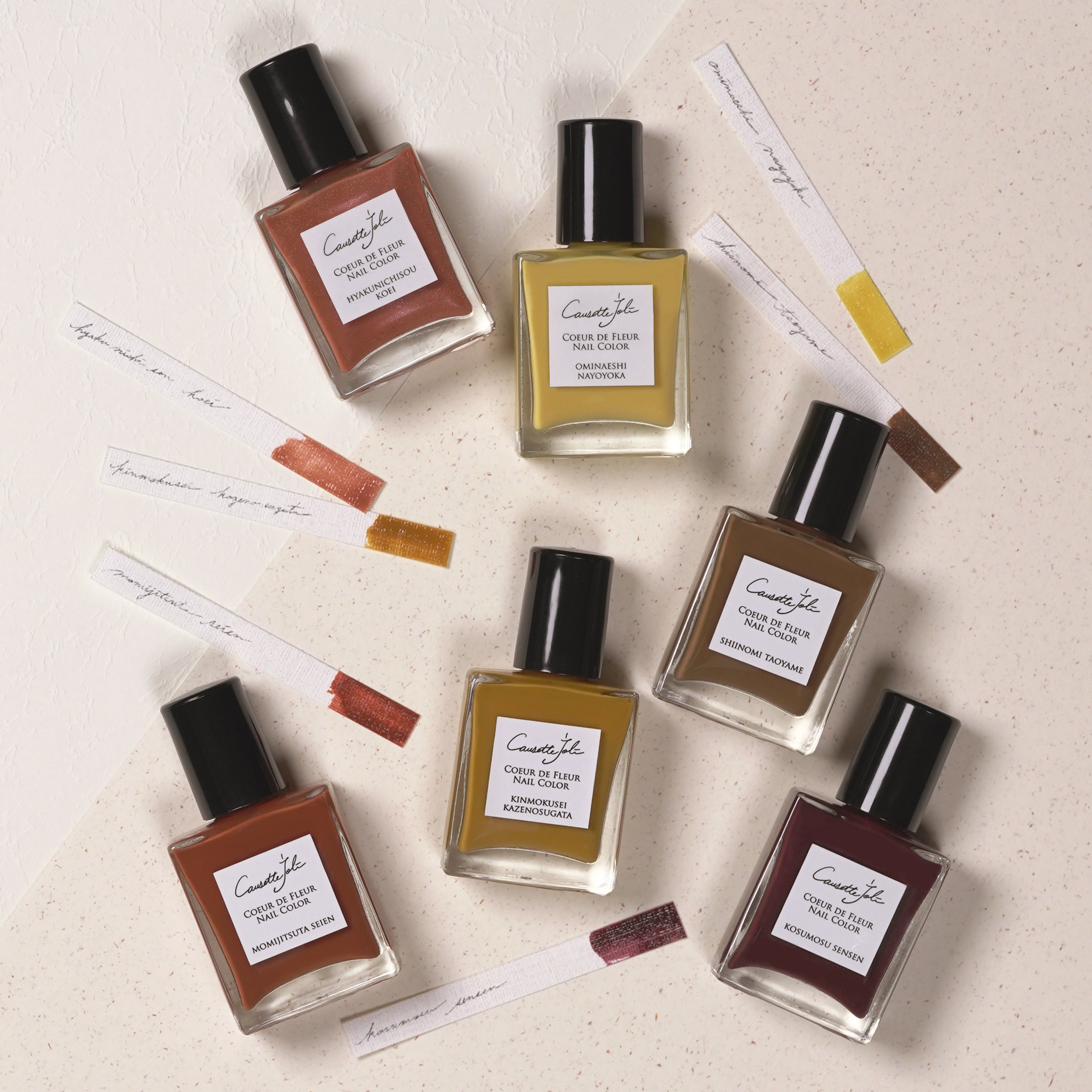 ネイルカラーは⽇本⼈の感性に訴えかけるような花や⾃然の美しさを表現し、⽇本⼈の肌の⾊になじむように作られたマニキュアです。塗りやすく速乾性に優れており、トルエンやパラベンなどを配合していない健康に配慮した8⼤フリー製品となっております。