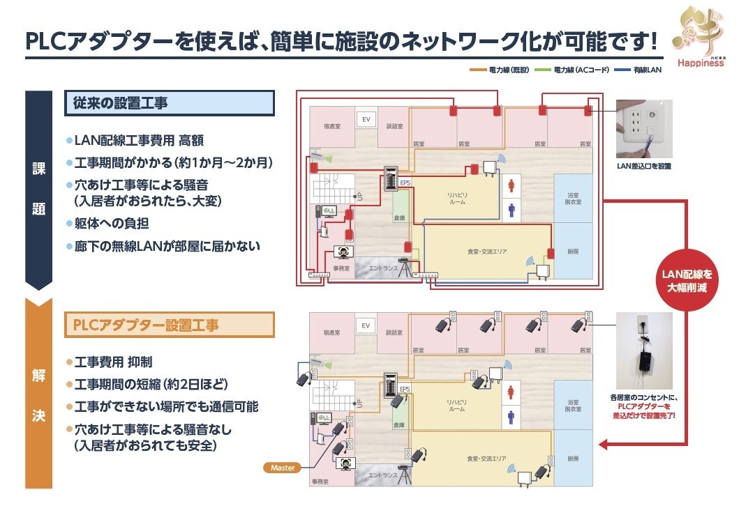 見守りシステム導入時に、配線工事費用がけっこう高額でかかるのを、安価でできるLAN配線システムです。