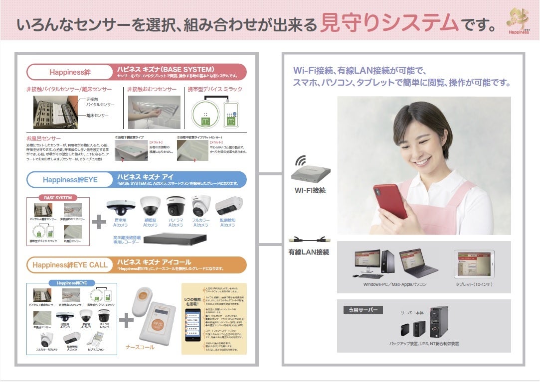 いろんなセンサー、カメラ、を選択できる高性能な見守りシステム「Happiness絆/ハピネス キズナ」 ナースコールも対応!