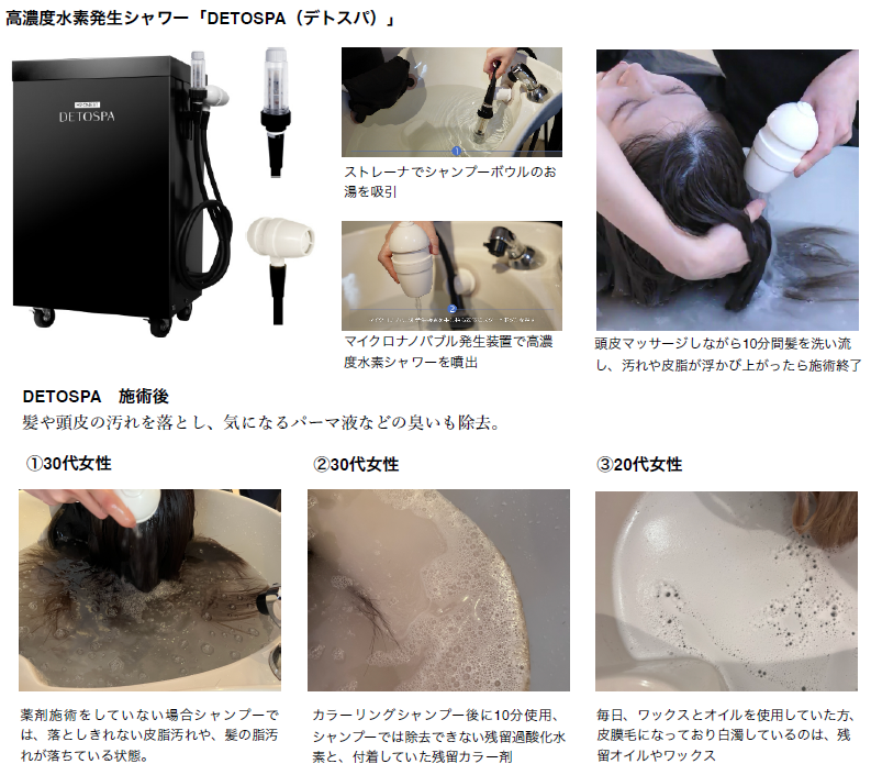 高濃度水素が髪と頭皮の活性酸素を除去 サロン専用・高濃度水素発生シャワー「H2 ONEST DETOSPA」誕生!
