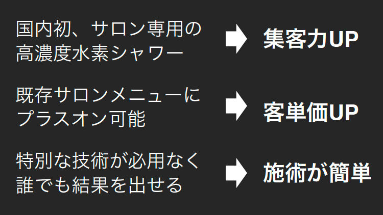 サロンのメリット:施術10分、特別な技術は必要なく、サロンのあらゆるメニューに追加可能