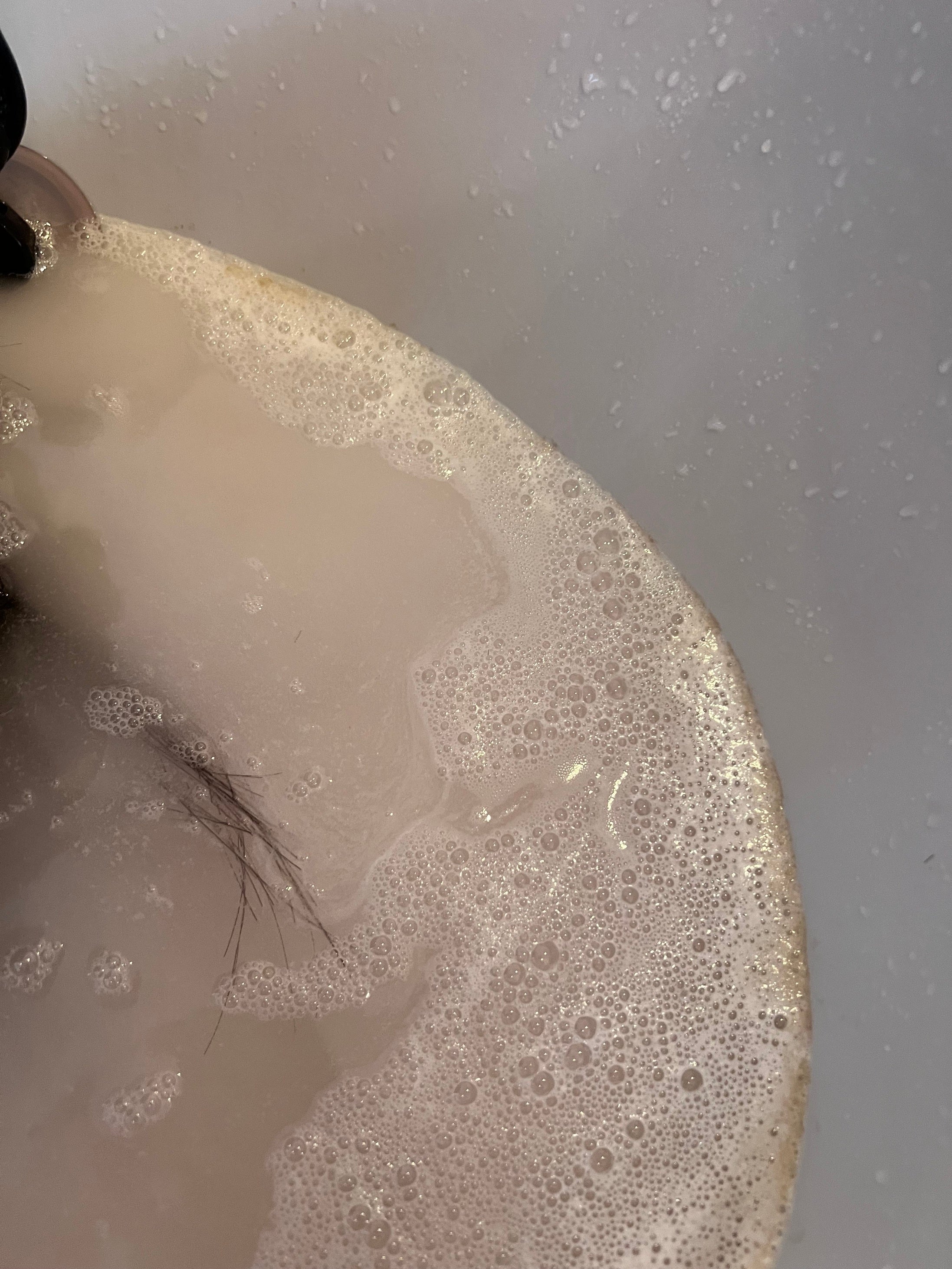 試験例)電⼦顕微鏡による⽑髪表⾯撮影サンプル⽑束を40度のお湯に漬け、DETOSPAの⽔素溶解装置を10分間稼働。