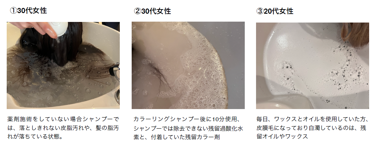 髪や頭⽪の汚れを落とし、気になるパーマ液などの臭いも除去。