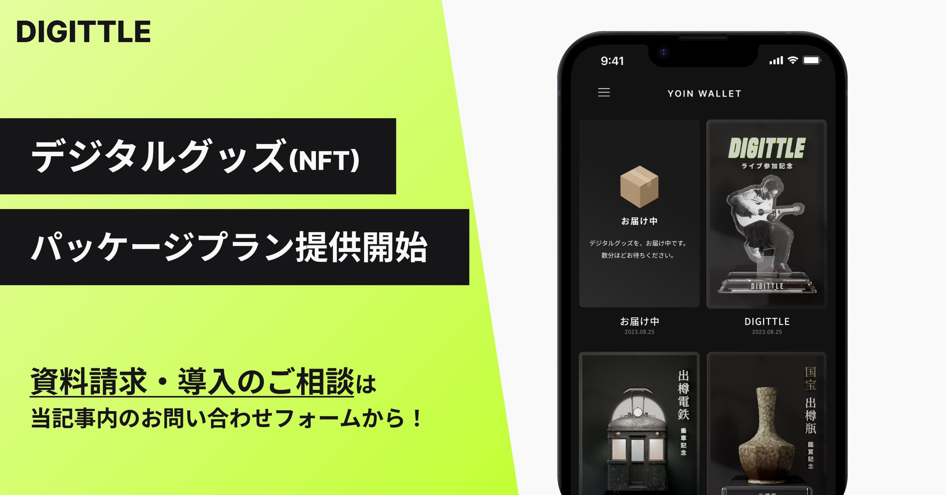 株式会社Digittle(本社:東京都渋谷区、代表取締役:韮澤 真人、以下当社)は、本日2023年11月30日(木)より、イベントやオンラインでの販売、ノベルティとしての配布など、デジタルグッズを手軽に導入いただける3種類のプランを提供開始いたします。※デジタルグッズの提供における、デジタル上のプレミアムコンテンツ配布に関する当社独自技術は特許出願中です。