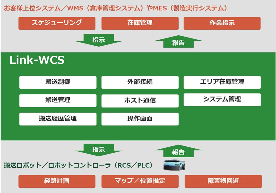 株式会社OrLinK(福岡市)は、この度、AGV/AMR(以下、搬送ロボット)向けの搬送制御システムLink-WCSを開発しました。メーカー様の標準ロボットコントローラに不足している機能を補完する役割を果たすとともに、他設備の監視・制御をする事で、AGV・AMR以外の機器まで一括管理出来る為、人手不足の解消や人件費削減に貢献します。また、上位システムとの接続インターフェースを備えている事で、上位からの指示をリアルタイムに送ることで搬送の流れやスケジュールを適切に管理出来ます。