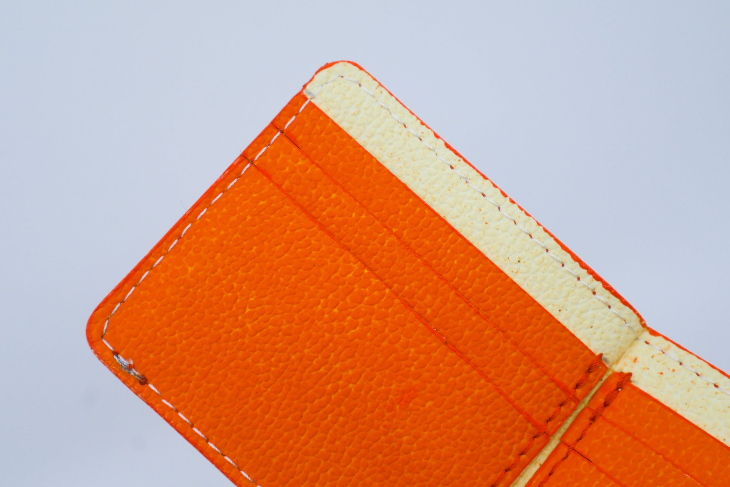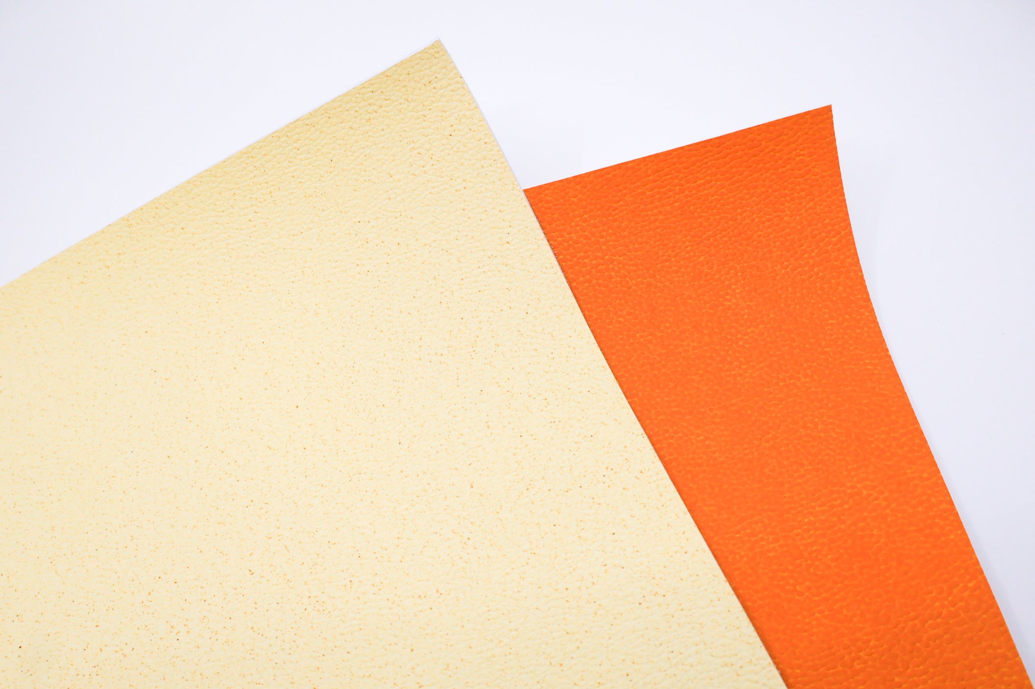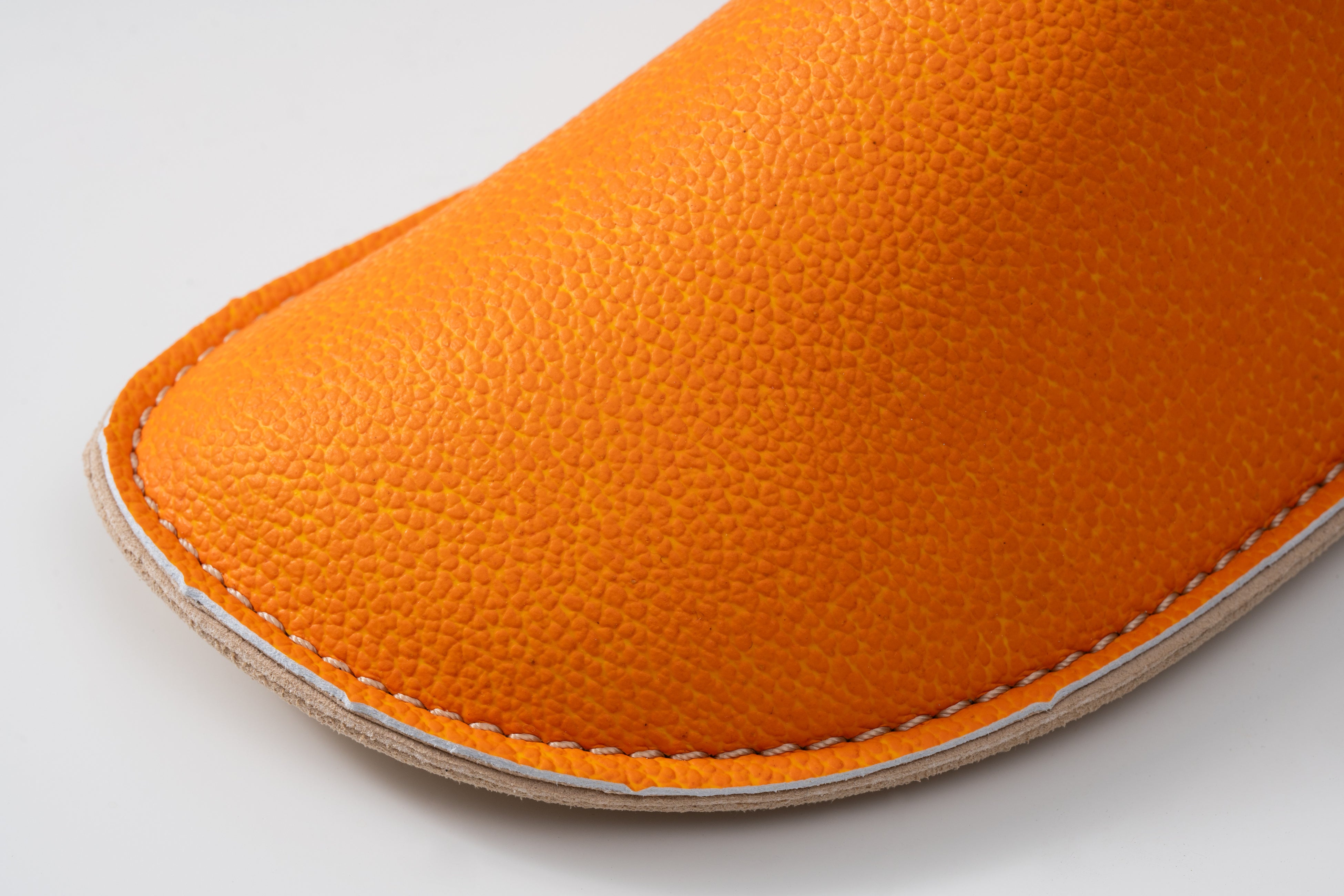 表面に凹凸による立体感をつけ、凸部と凹部で異なる色になるように設計。さらにはコーティングにより柑橘特有の光沢を再現することで、一般的な人工皮革にはないリアルな外観を再現しました。環境への配慮とともに素材としての意匠性も追求しています。