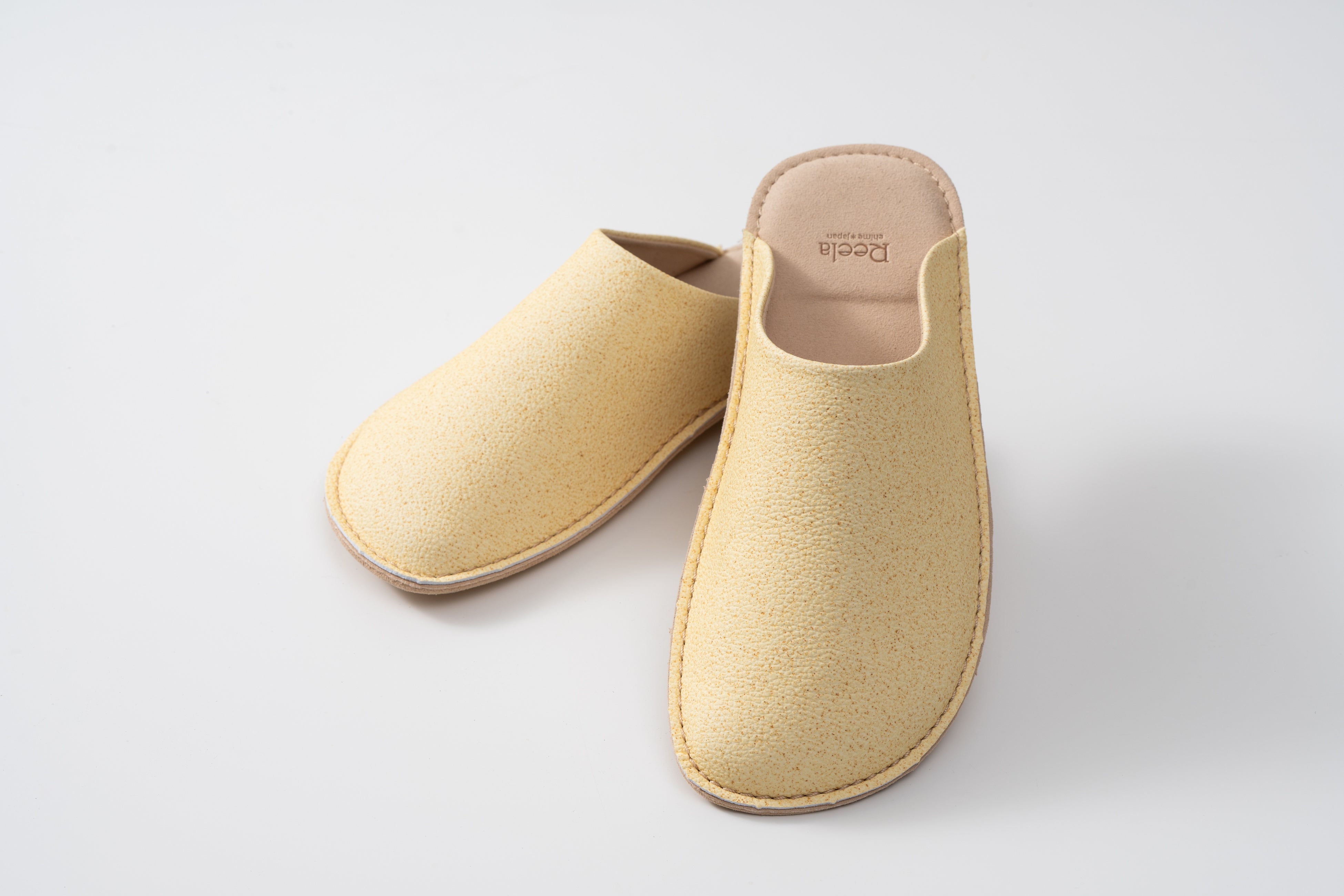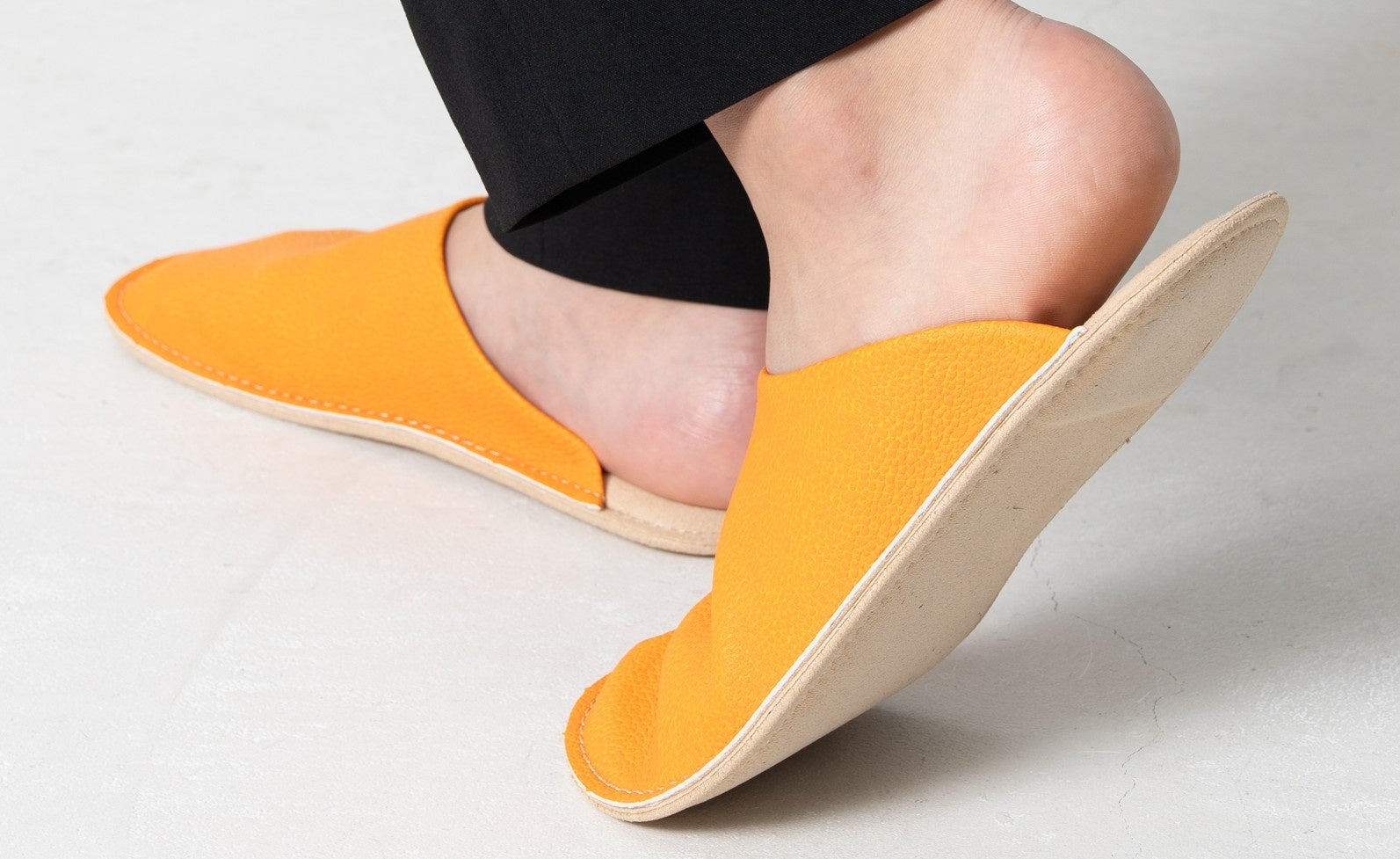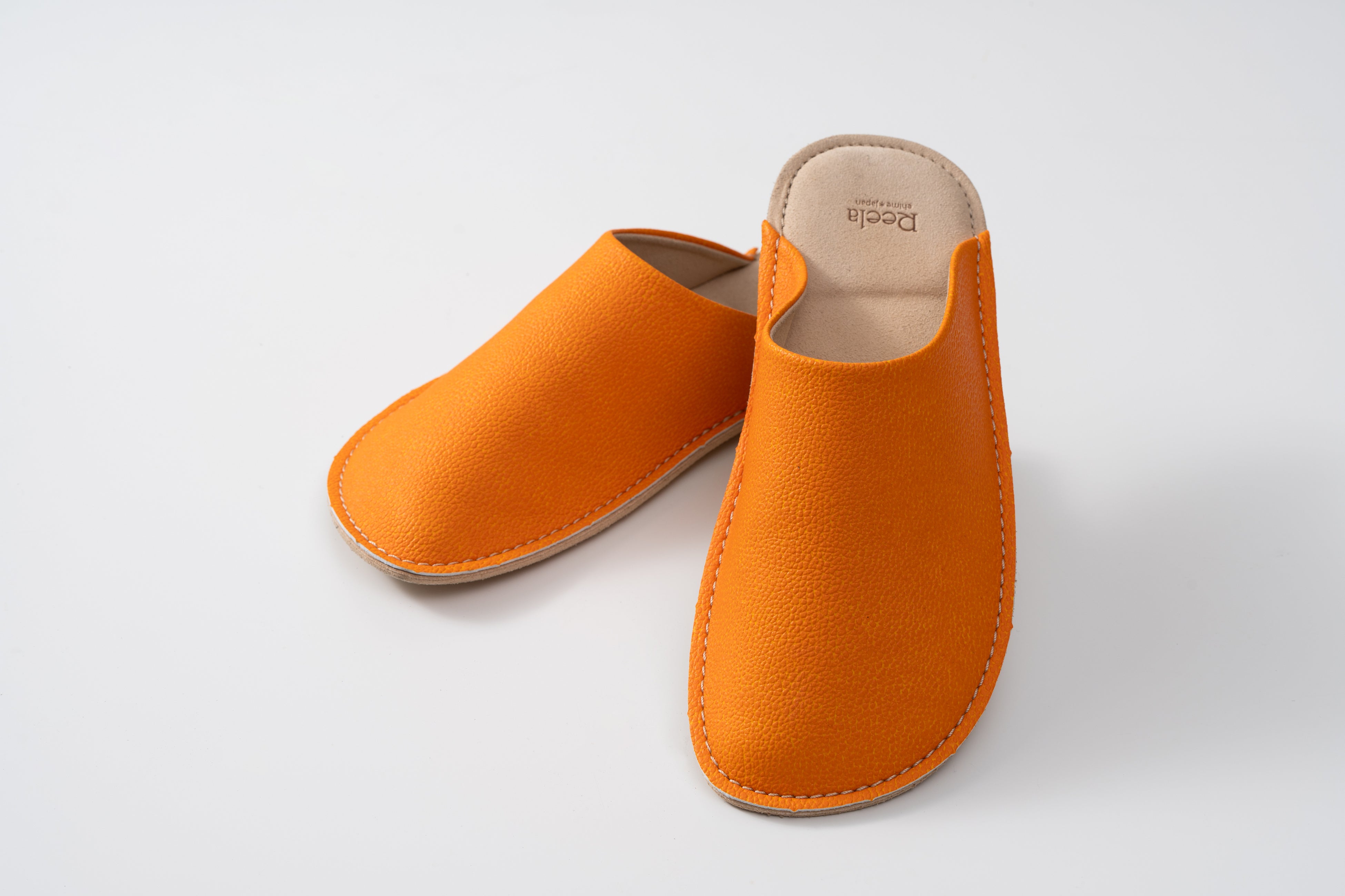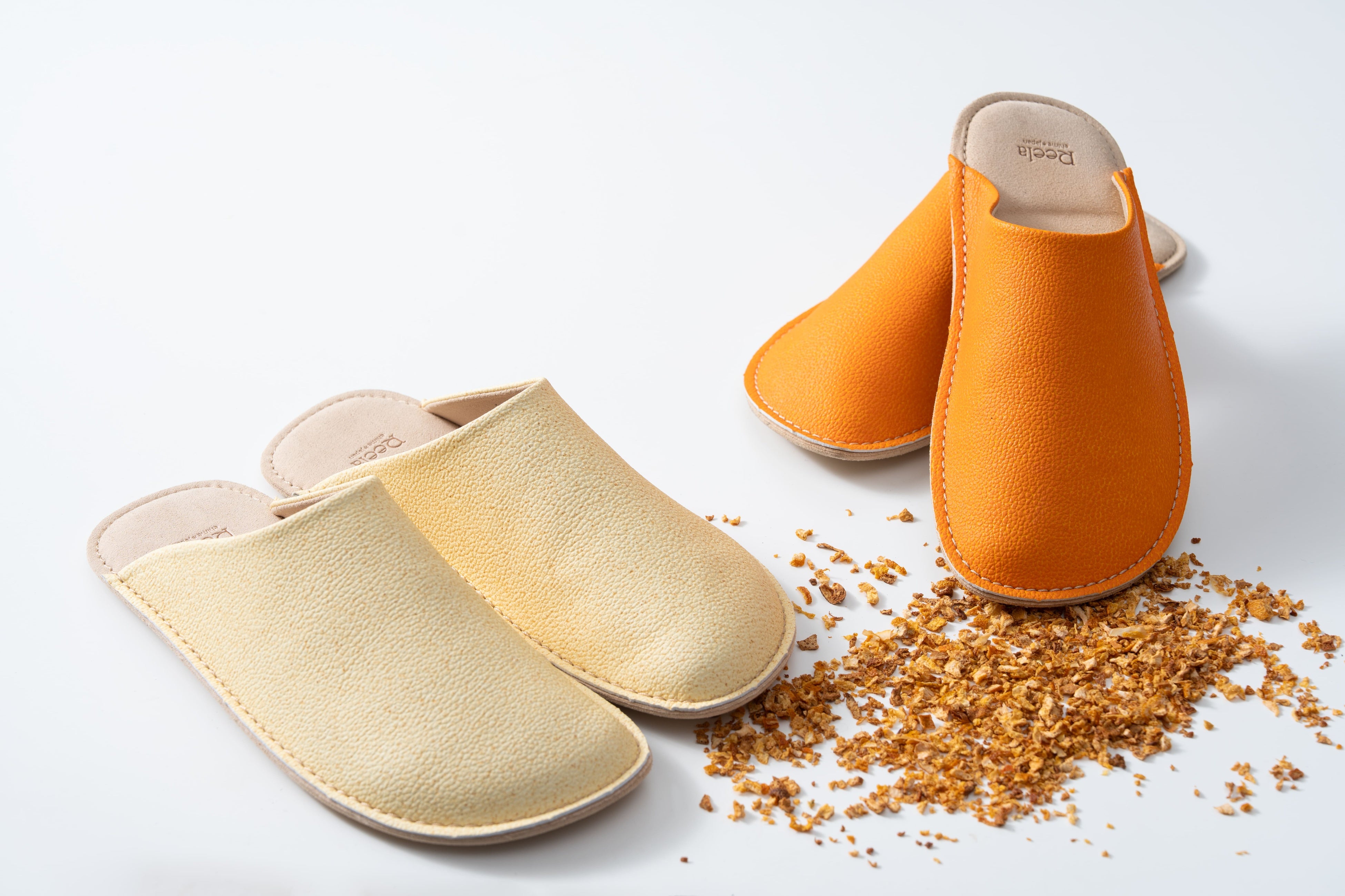 【愛媛発】伊予柑の搾汁残渣を新素材「いよかん人工皮革」にアップサイクル。老舗サンダルメーカーと共同で商品化した室内履き、ルームサボを4月16日から展開