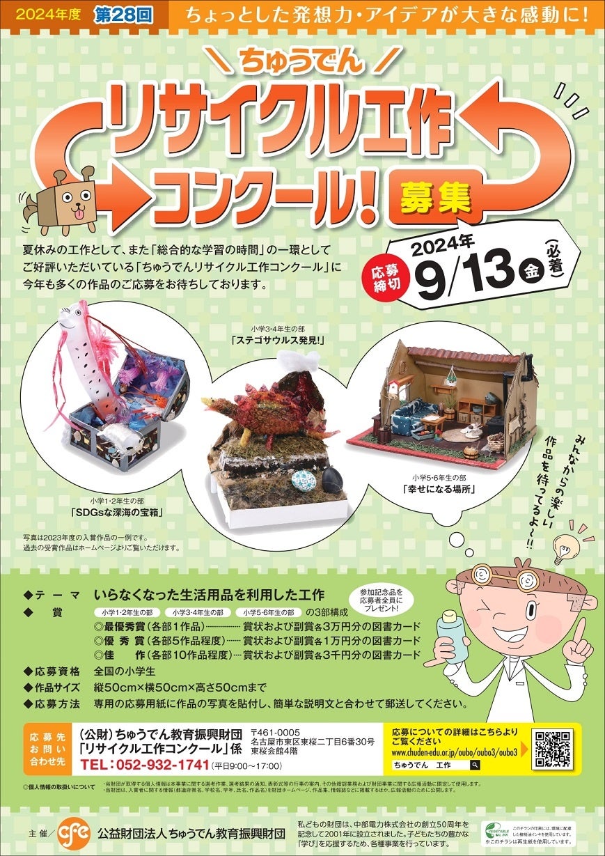 全国の小学生対象「第28回ちゅうでんリサイクル工作コンクール」作品募集のお知らせ