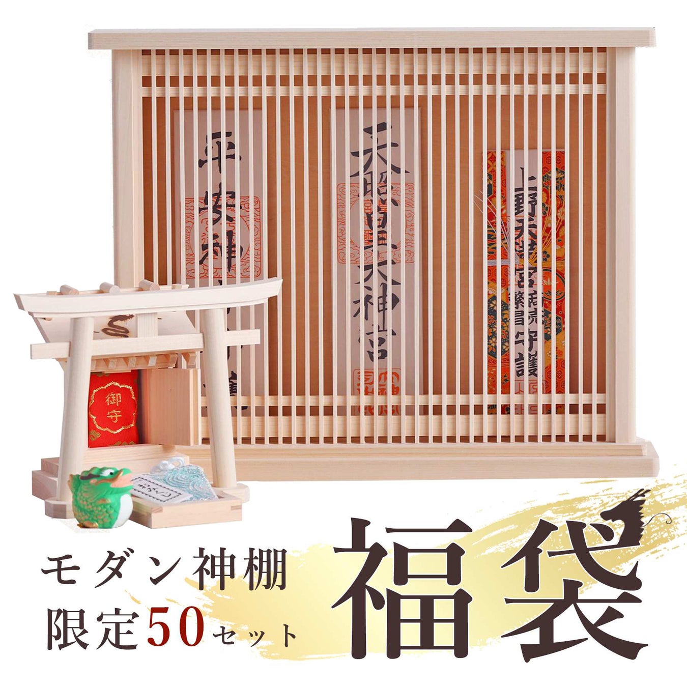 お正月の神社アイテムを一度に収納 「モダン神棚・福袋セット」